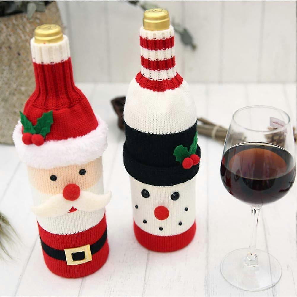 Christmas Wine Bottle Covers, Xmas Red Wine Bottle Cover Sweater Bottle Clothes Wine Bottle Bag Santa and Snowman Style 2Pcs Party Table Decoration (r