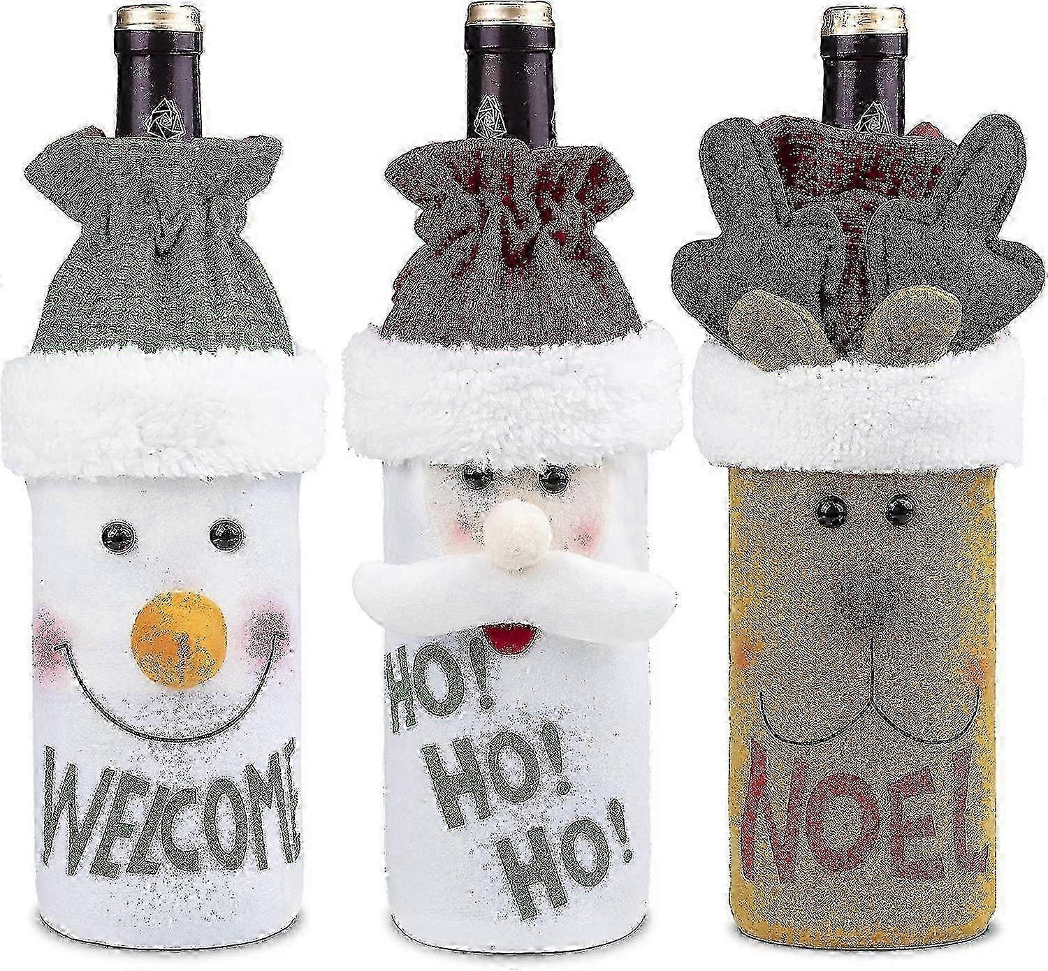 Christmas Wine Bottle Cover Topper Set 3pcs, Handmade Wine Bottle For Party Decorations