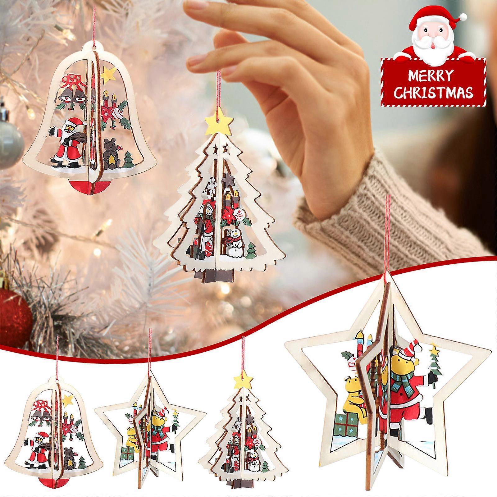 Christmas Hollow Wooded Xmas Tree Bell Star Pendant Pentagram Bells Trees Snowman Christmas Lovely Hanging Decorations Navidad