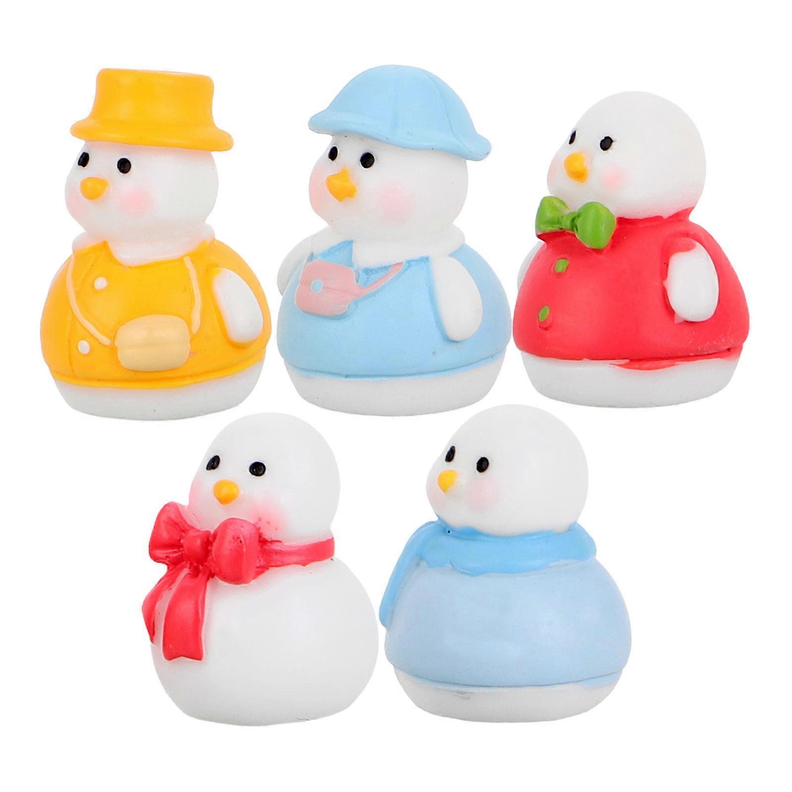 5pcs Resin Mini Snowman Figurines for Christmas Winter Home Party Decor – Micro Landscape Tabletop Decorations with Assorted Character Designs