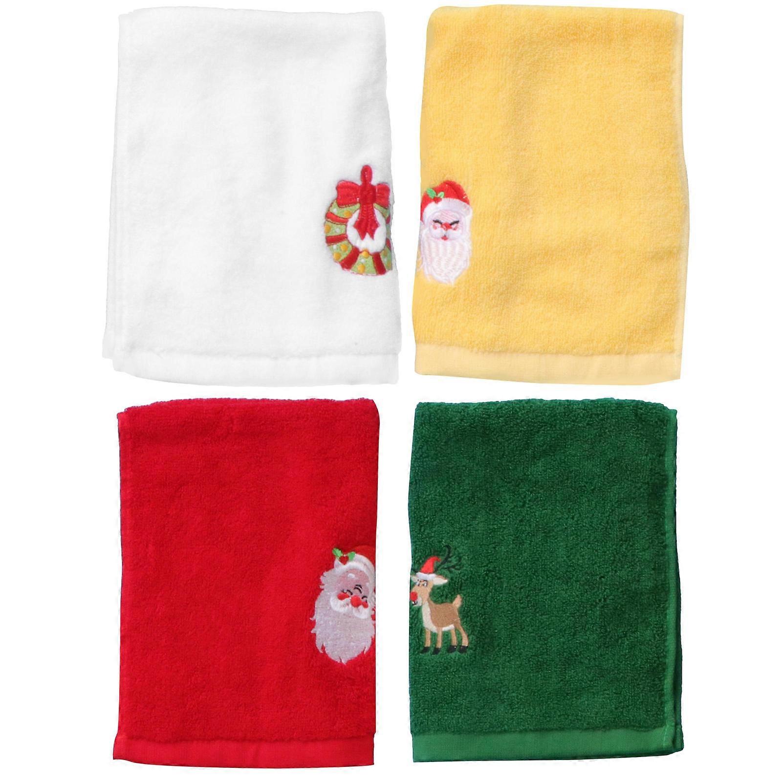 Christmas Embroidery Towel Cotton Decorative Towel for Home Use 4Pcs Set
