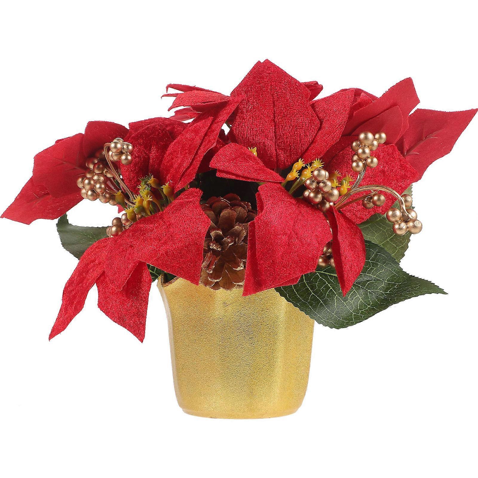 Christmas Tabletop Decorations Mini Christmas Tree Artificial Poinsettias Flowers Potted Plants Desktop Plants For Home Garden Table Centerpiece