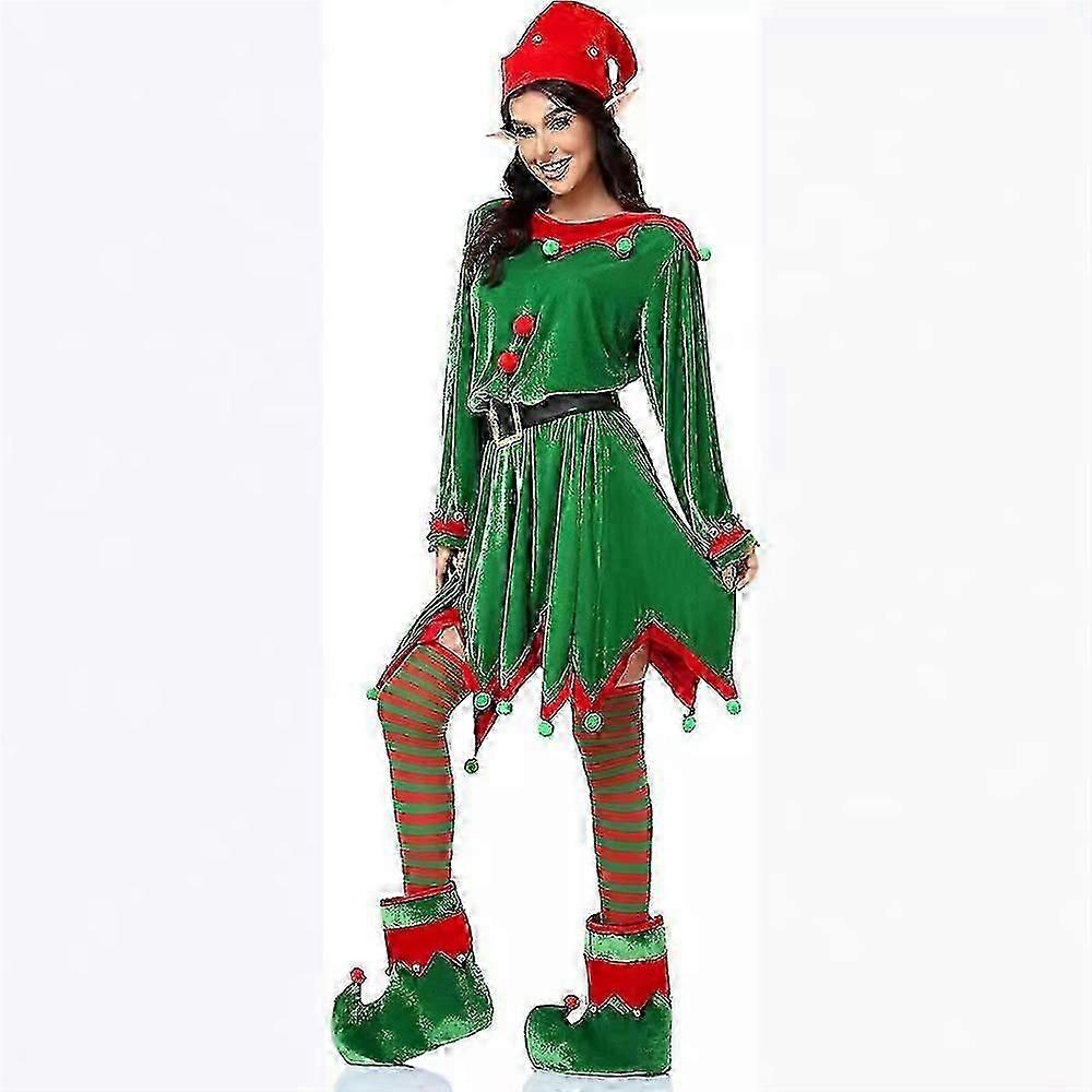 Christmas Women Elf Cosplay Costume Full Set Adults Xmas Party Santa Helper Fancy Dress Outfits