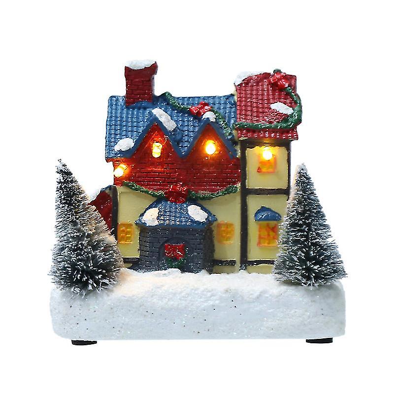 Christmas Indoor Resin Led Lights Wooden House Decoration (d, Style) bd