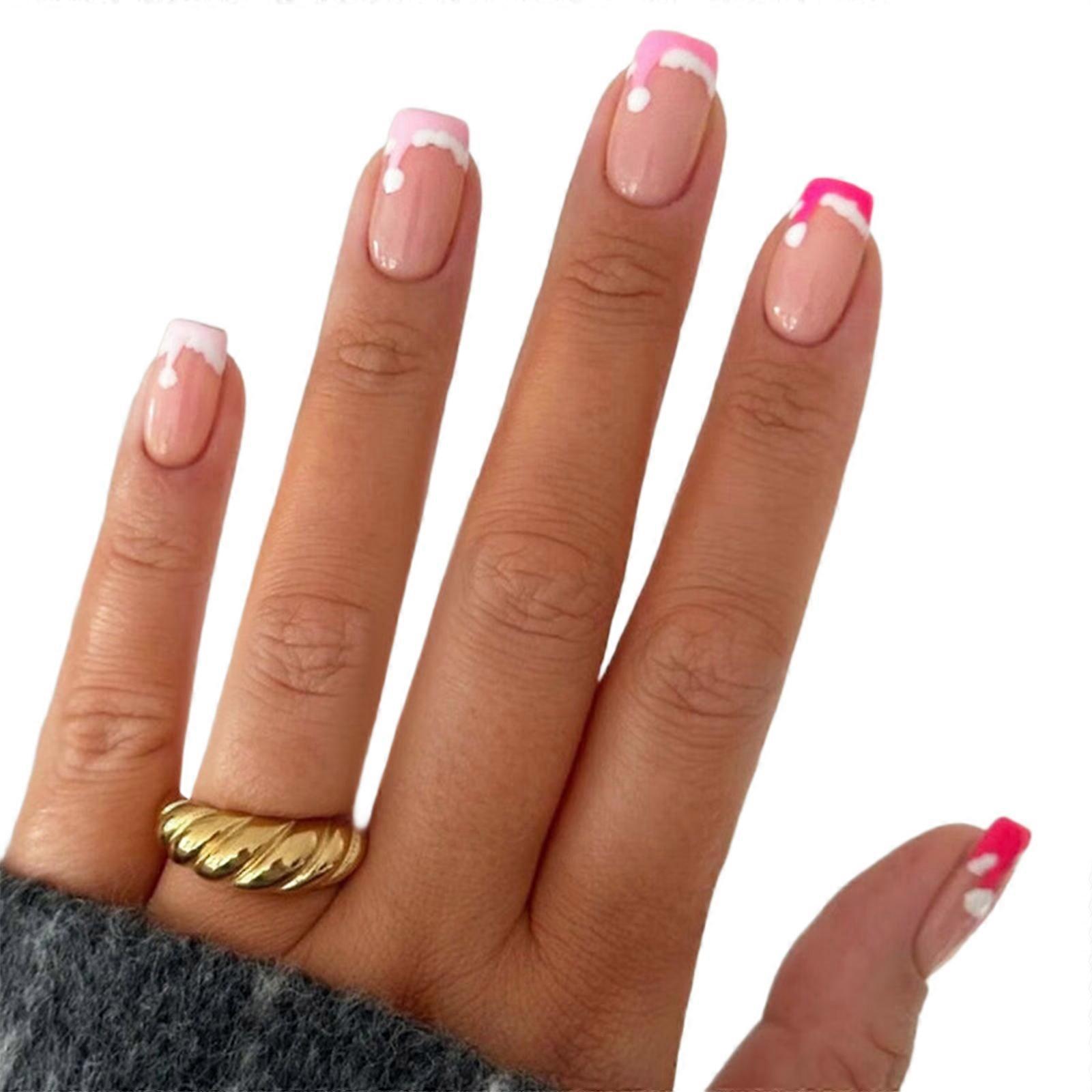 Fashion French Style Press on Nail With Christmas Hat Designs Nail Art Decors For Quick And Easy Application 24Pcs