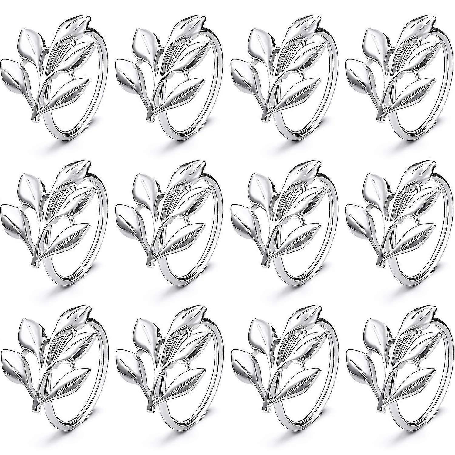12pcs Leaf Napkin Rings for Christmas Thanksgiving Wedding Party Decor Silver