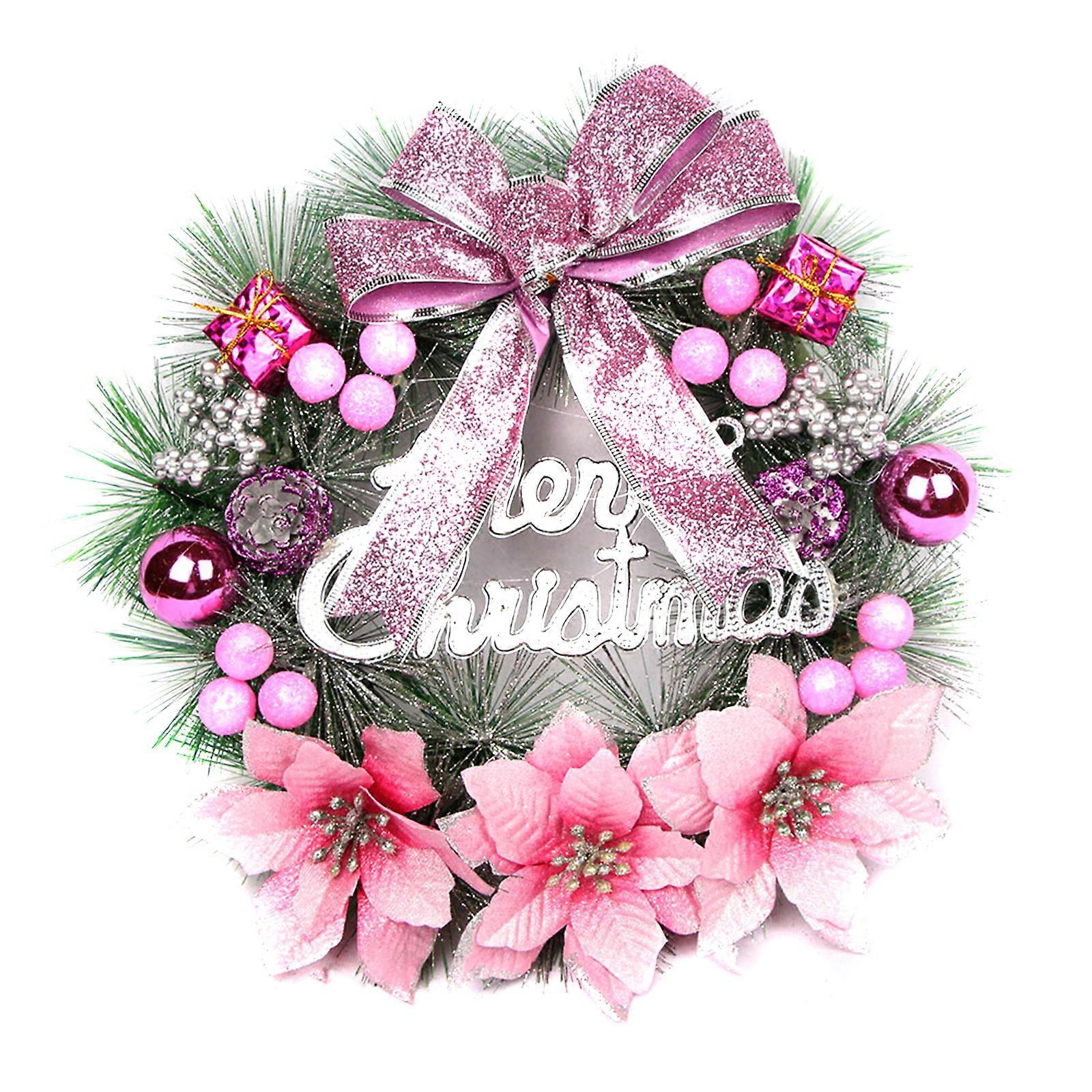 Christmas Handmade Wreaths Artificial Garland with Bells Bowknot Xmas Front Door Wall Decoration