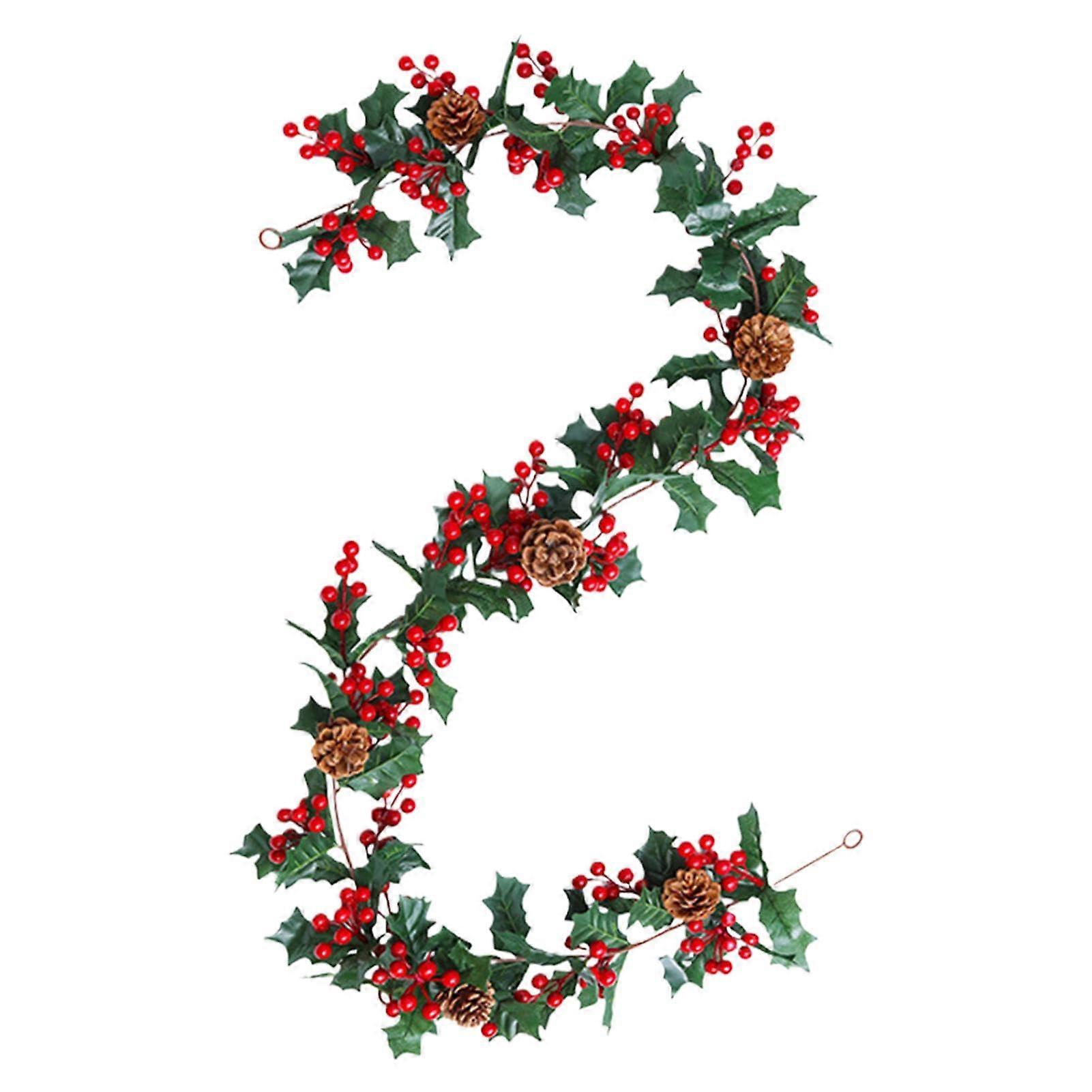 - Durable and Long-Lasting Material: Our Christmas berry garland is crafted from high-quality, resilient materials. It features artificial vines intricately woven with vibrant red berries and natural pine cones. The sturdy base ensures that the decorations maintain their shape and do not easily fall off. - Low Maintenance: Enjoy the festive atmosphere without hassle. This berry garland requires no additional care; simply wipe it down for a lasting holiday charm. - Versatile Decoration: Perfect for decorating any space for a variety of occasions. Whether you're hosting weddings, festivals, or winter celebrations, this garland enhances both indoor and outdoor settings. - Enhance Your Holiday Ambiance: Elevate your Christmas decor with our eye-catching garland adorned with bright red berries, natural pine cones, and seasonal foliage, bringing the essence of the season into your home. Use Scenarios: 1. Drape this gorgeous garland along your fireplace mantel for a classic holiday look that impresses guests. 2. Use it to embellish entryways or banisters, creating a warm and inviting atmosphere for your holiday gatherings. 3. Incorporate it into wedding decorations for a whimsical touch that celebrates the winter season.