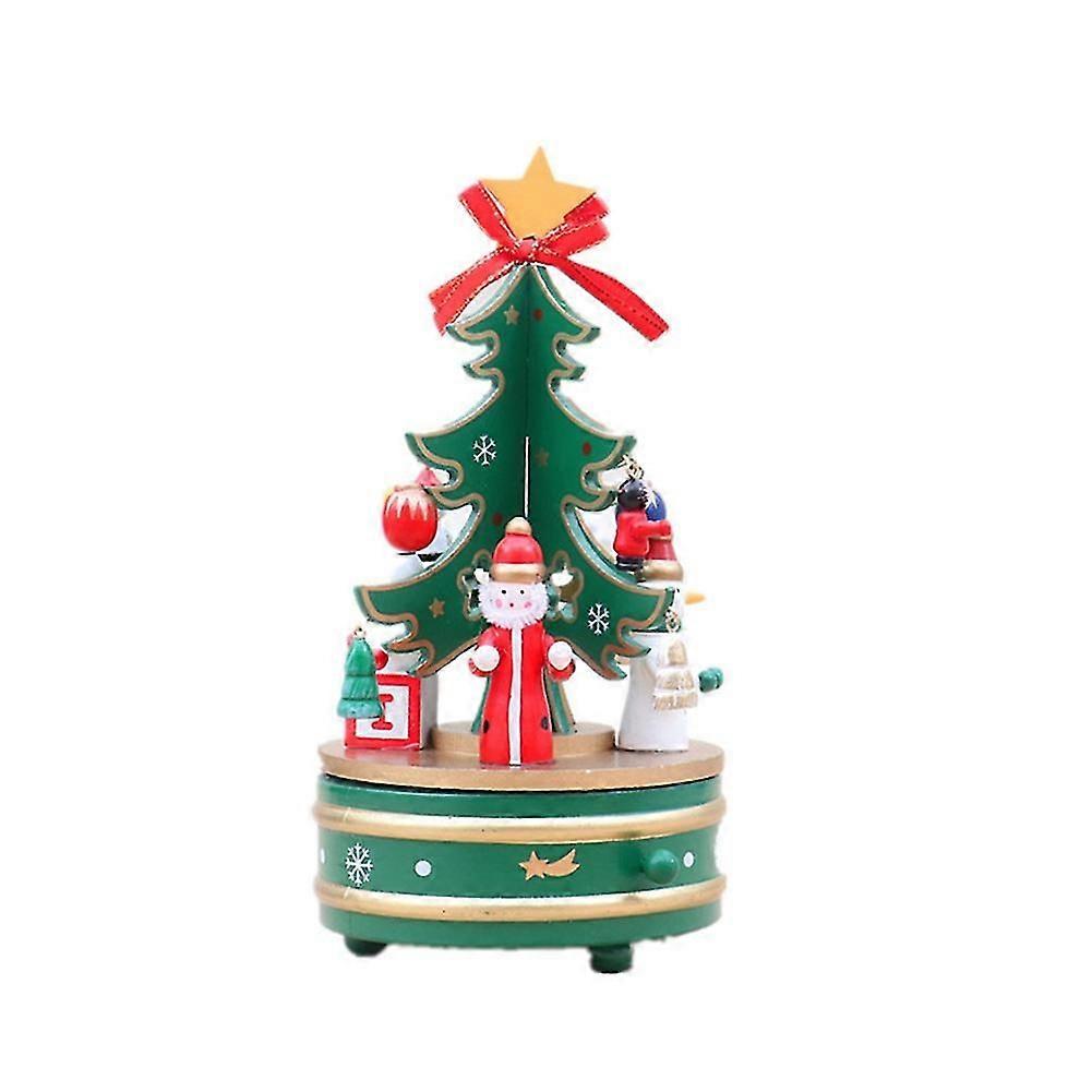 Christmas Wooden Rotating Music Box Shape Home Ornament Green