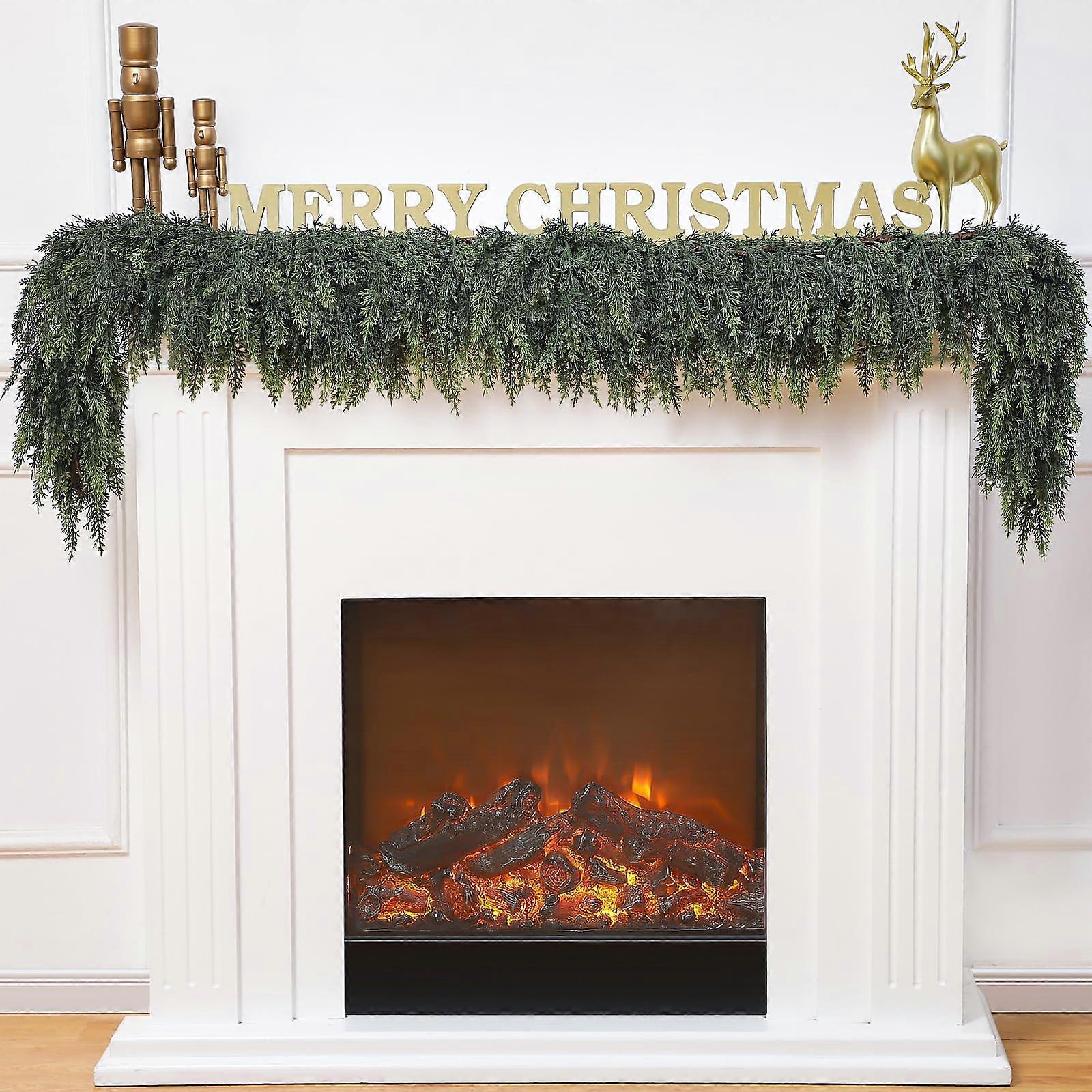 Christmas Cedar Garland - 6 Feet Thick Lush Realistic Green Faux Cedar Pine Needles for Home Mantel Fireplace Winter Decor