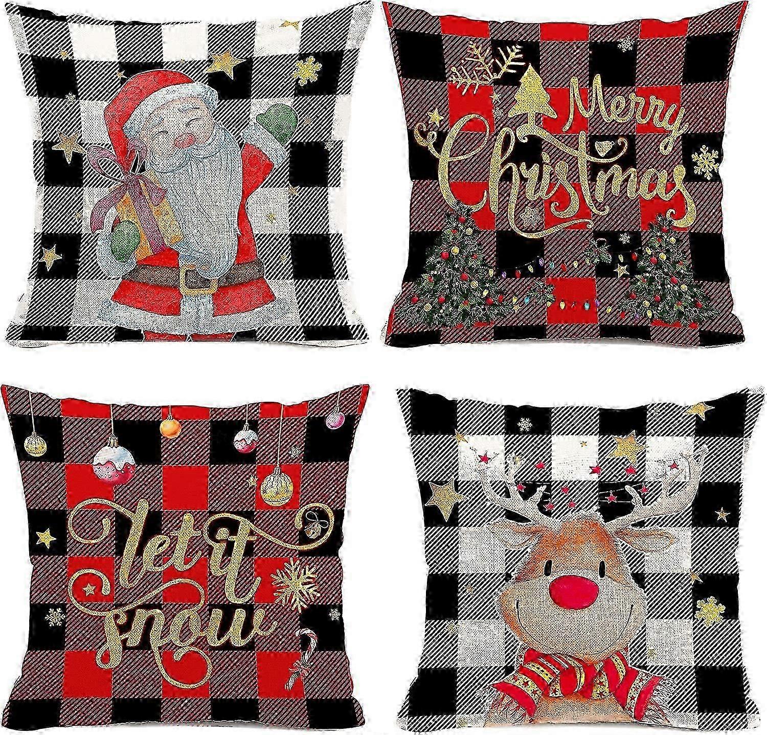 Christmas Pillow Covers Plaid Christmas Pillow Covers 18x18 Set of 4, Black Red Christmas Decorations, Christmas