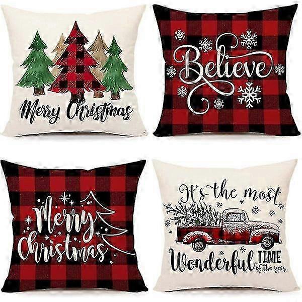 Christmas Pillows 18x18 Set of 4 Pink Stripes Santa Snowman Snowflake Merry
