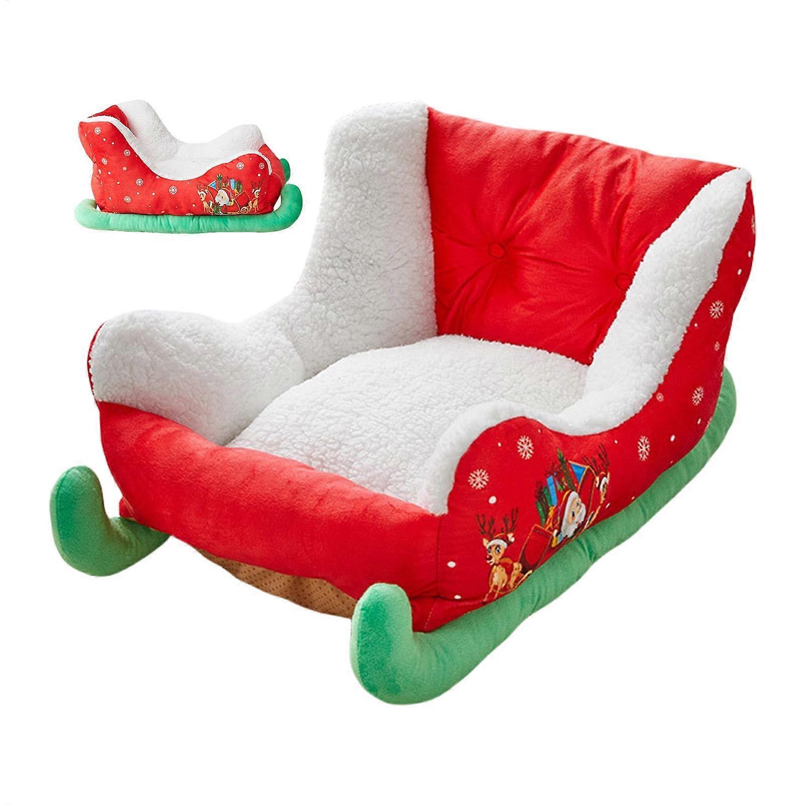 Christmas Cat and Dog Bed, Winter Warm Pet Bed with Sleigh, Cute Sleigh Pet Bed, Soft and Cozy Pet Couch, Durable and Easy to Clean Pet Bed.