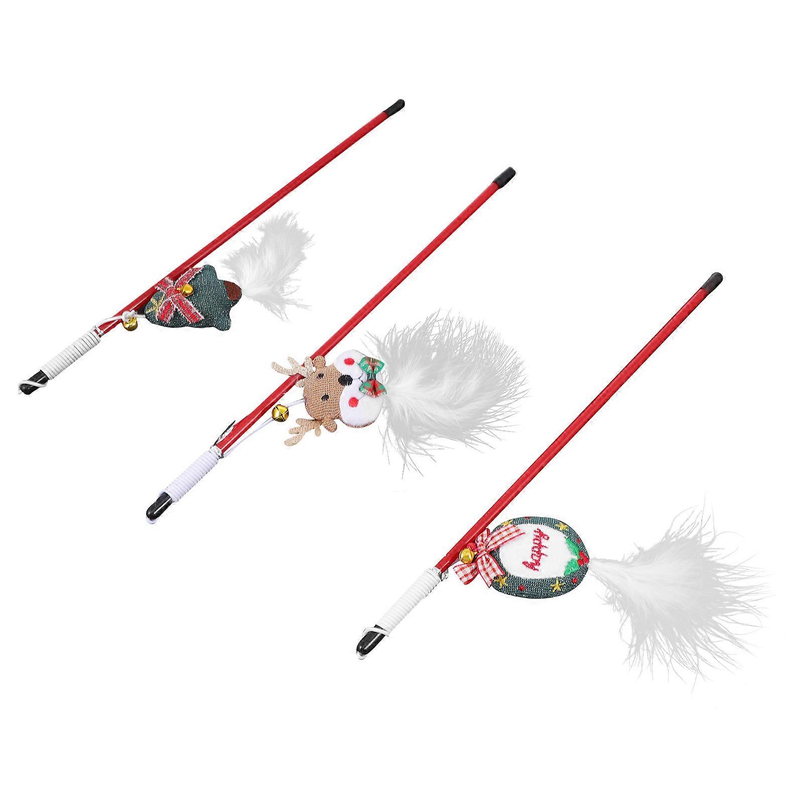 Christmas Cat Teaser Toys Set with Plush Kitten and Stick for Pet Use 3Pcs