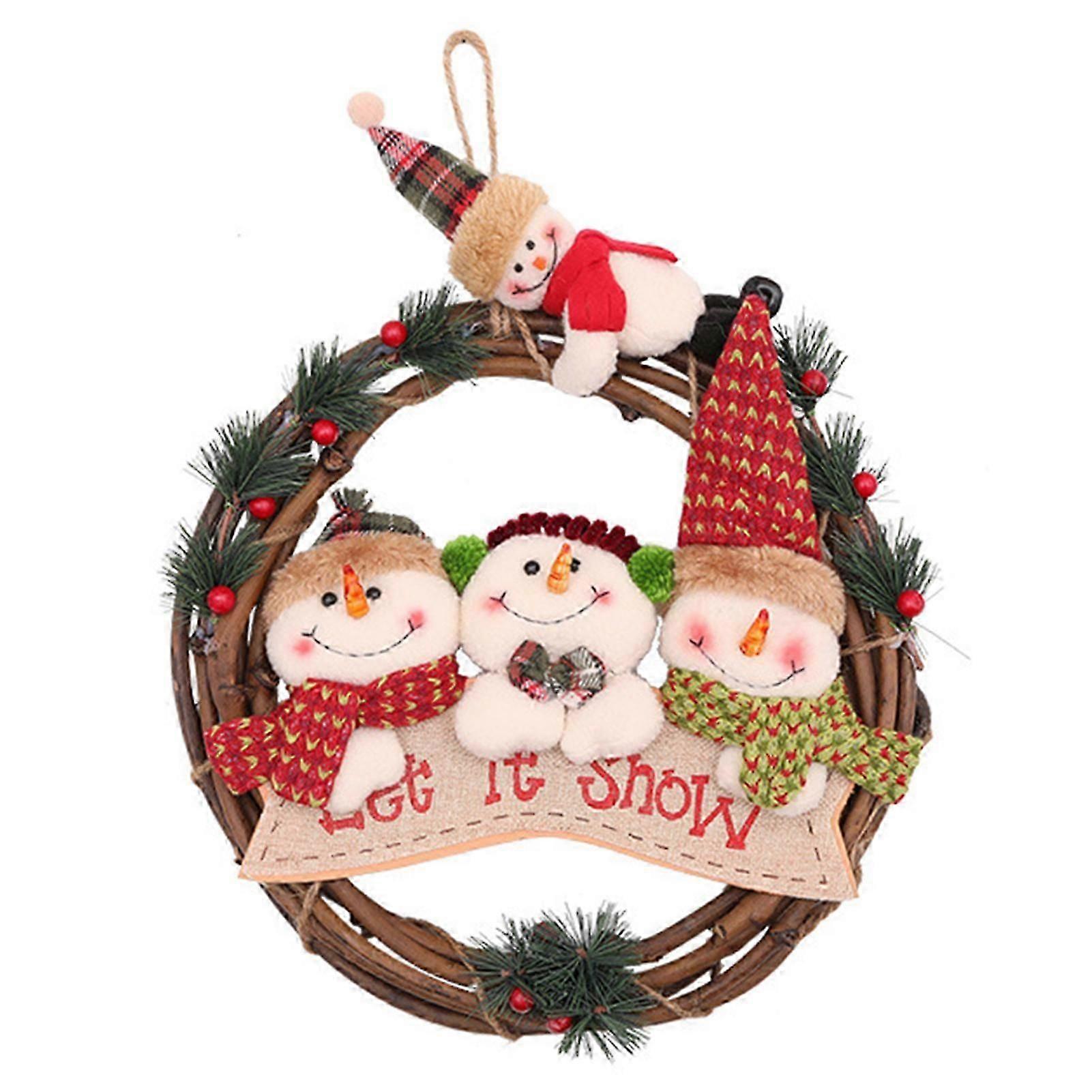 Xmas Rattan Wreath Garland Indoor Winter Holiday Decor Home Door Window Ornament Office Desk Ornament