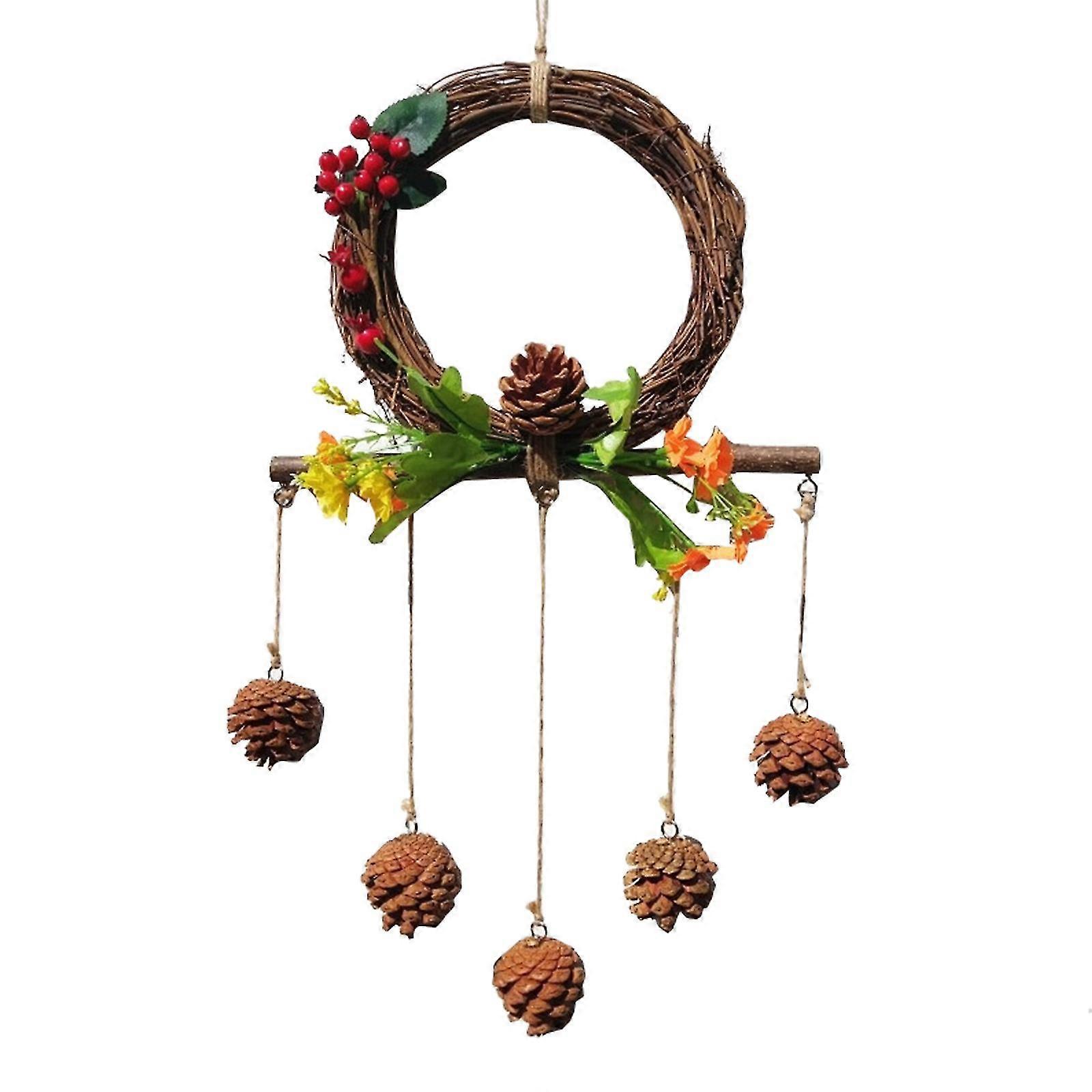 Christmas Rattan Wreath, 20cm Diameter, Wall Door Hanging Decoration, Simulation Garland,4,Brown