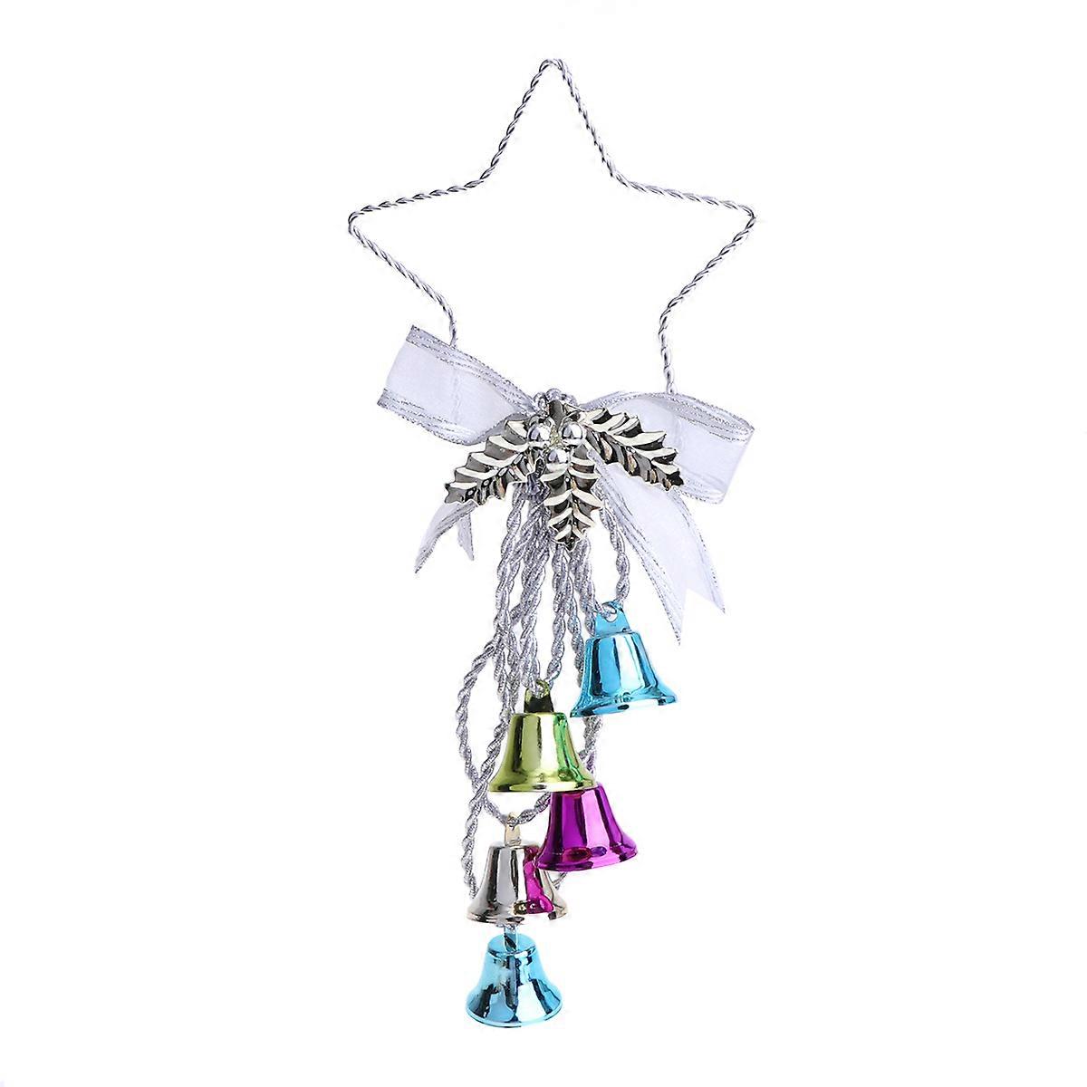 Christmas Decorative Hanging Pendants Iron Bells Pentagram Pendant Decorations Christmas Tree Door Pendant for Home Office Cafe Shop (Five Color)