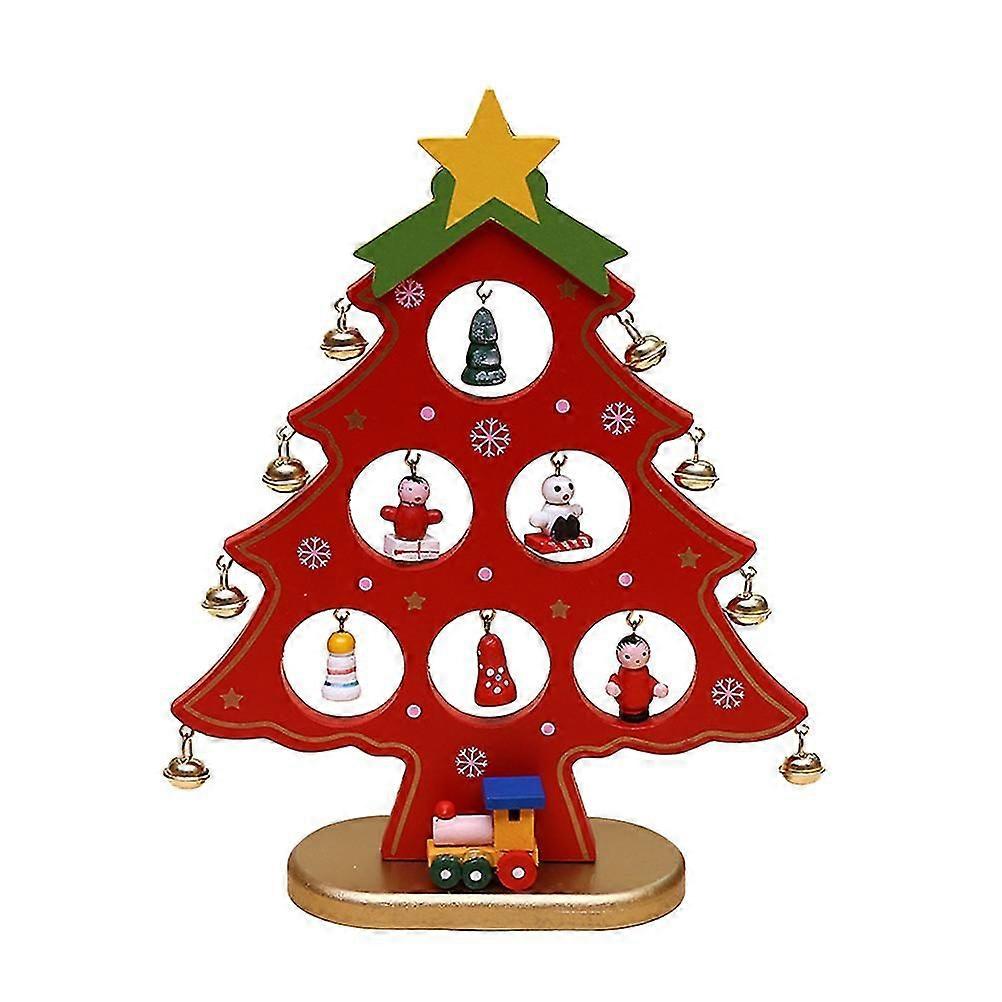 Christmas Decorative Wooden Mini Christmas Tree Desktop Decoration Ornaments Kids Gift Home Party Kindergarten Decor (Red)