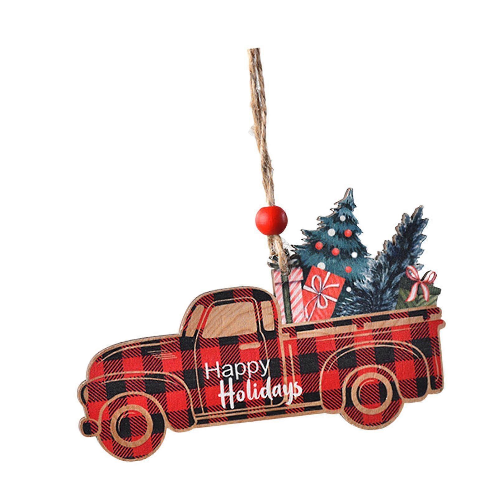 Christmas Vehicle Wood Ornament Wood Xmas Decoration for Garden Room Balcony Red Car