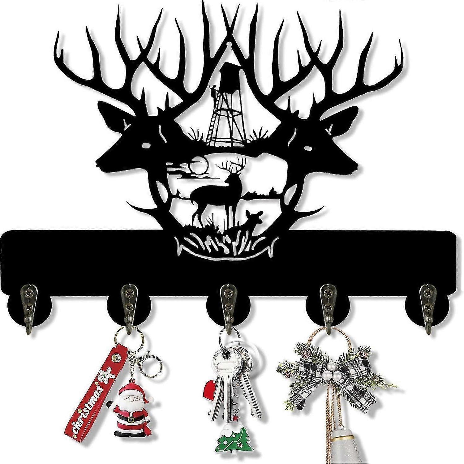 Christmas Deer Key Holder for Wall, Animal Key Rack for Wall,Antlers Coat Hooks, Stag Head Wall Mount Key Rack