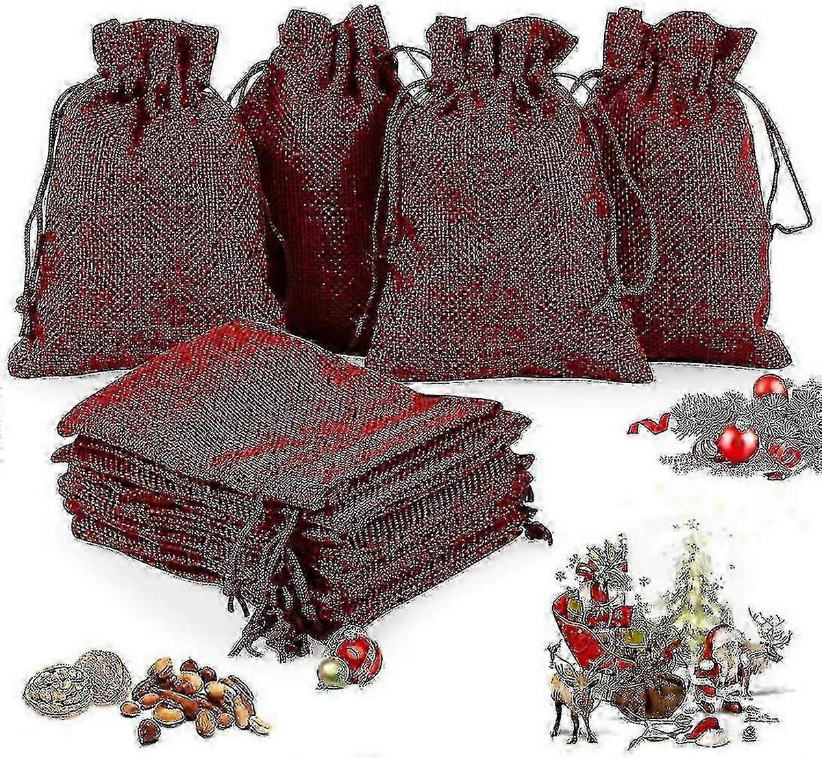 Christmas Burlap Sack, 24 Pcs Diy Jute Sack Bags For Filling Advent Calendar, Natural Pouches, Advent Calendar Drawstring Bags, 13cm X 18cm (red)