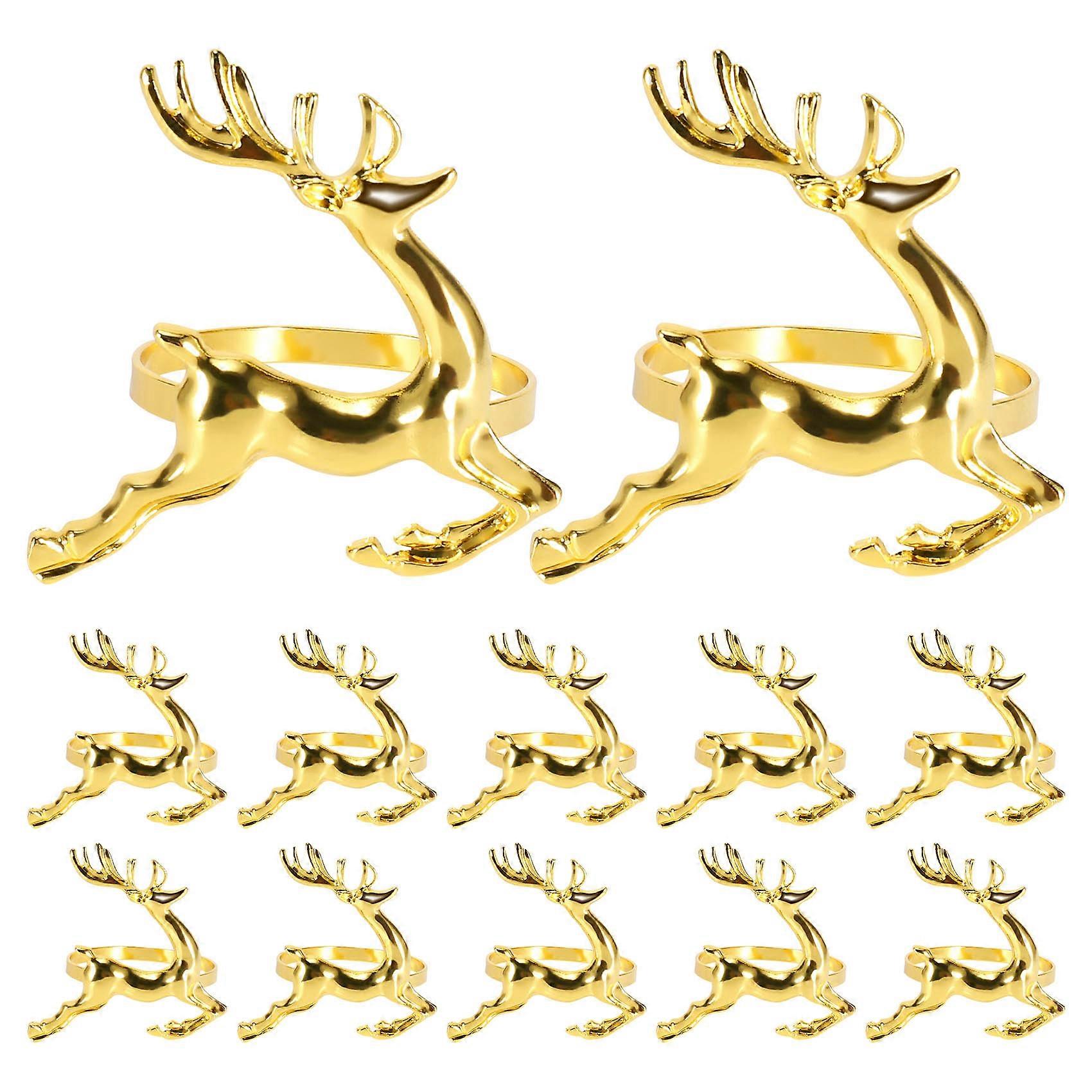 12Pcs Christmas Elk Deer Napkin Rings Gold Alloy Napkin Buckle Napkin Ring Holder Hotel Restaurant