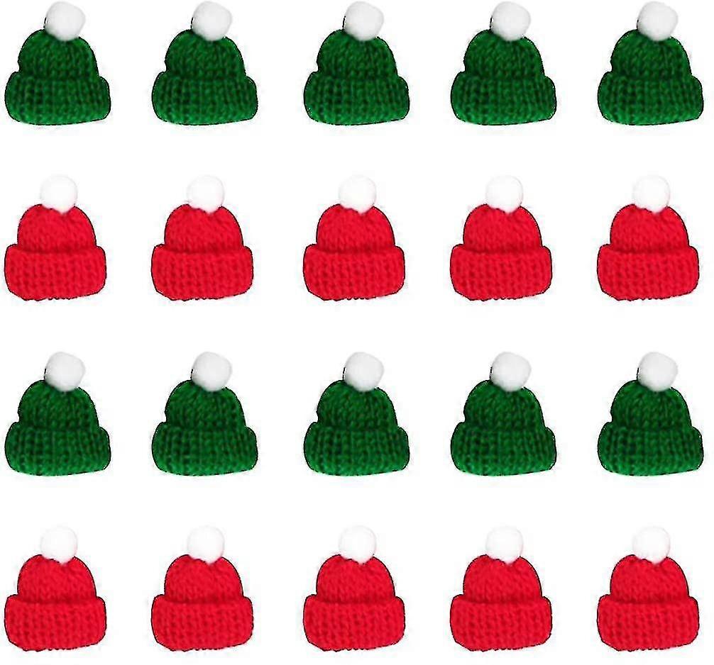 Christmas 20 Pcs Mini Knitted Christmas Santa Hat Santa Claus Hats Lollipop Top Wraps Toppers Wine Bottle Stopper Tree Decor