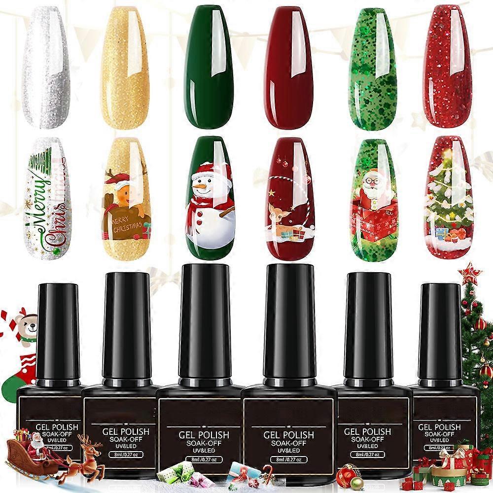 Christmas 6-piece Nail Polish Gel Border Phototherapy Gel Long-lasting Nail Gel Kit Nail FLYE4054