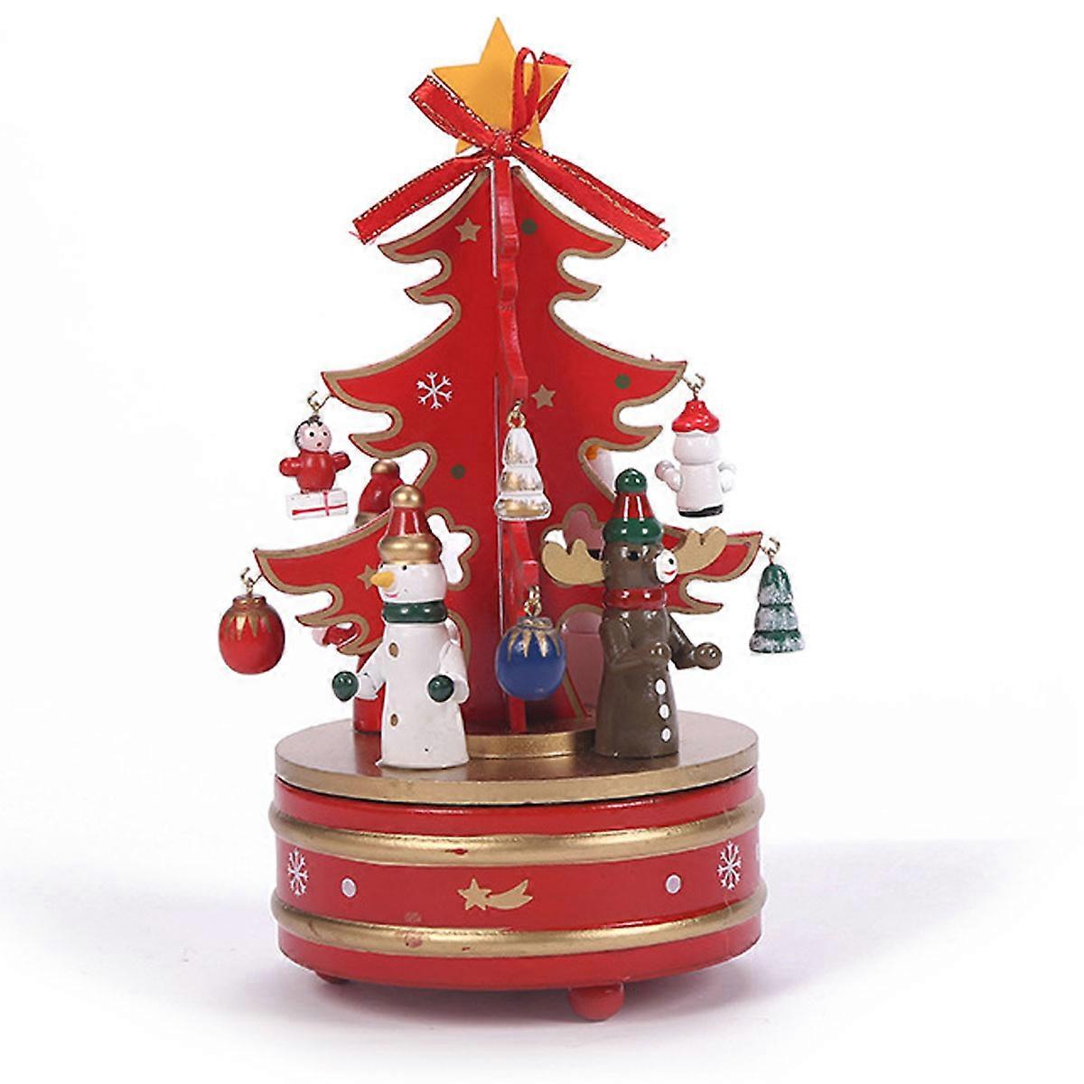 Christmas DIY Music Box, Wooden Xmas Tree Wind-up Revolving Musical Tabletop Decor Ornaments