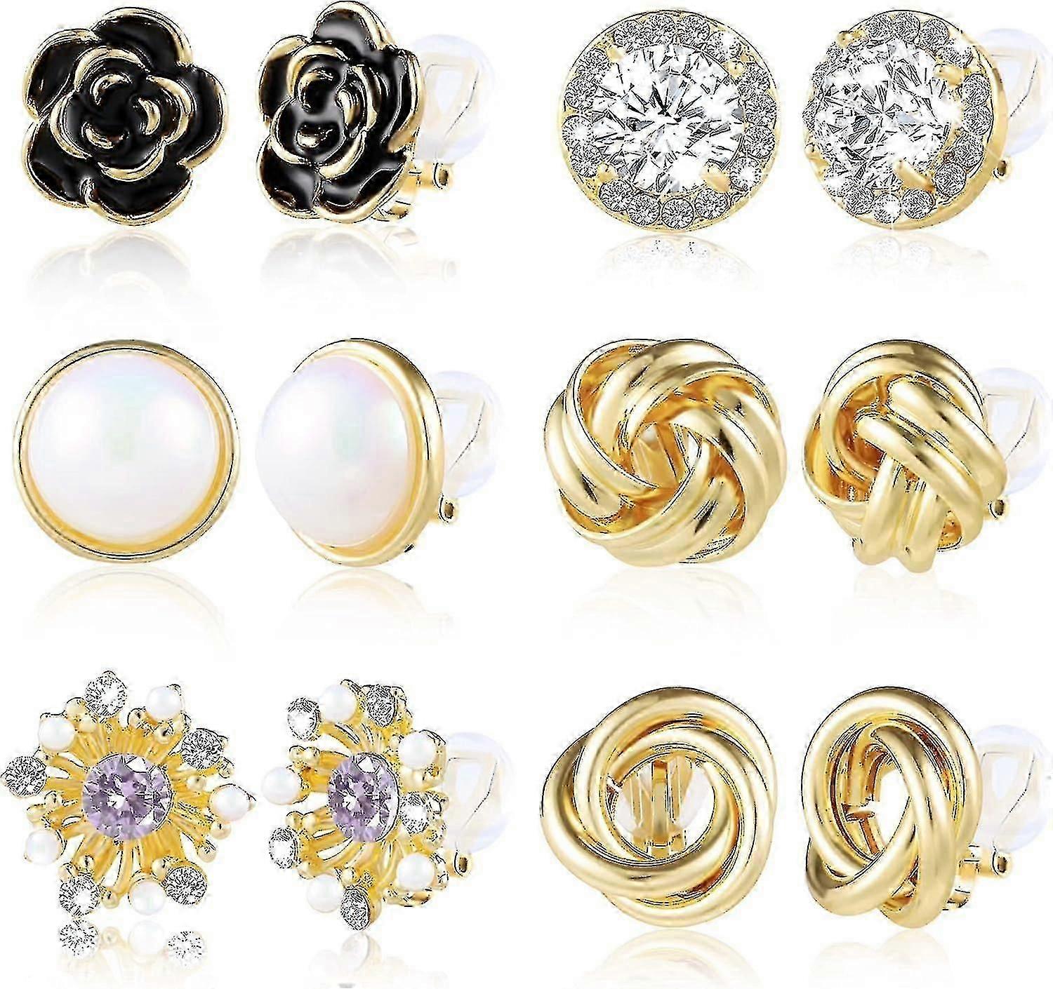 Clip On Earrings - 6 Pairs Hypoallergenic Non-pierced Clip Earrings