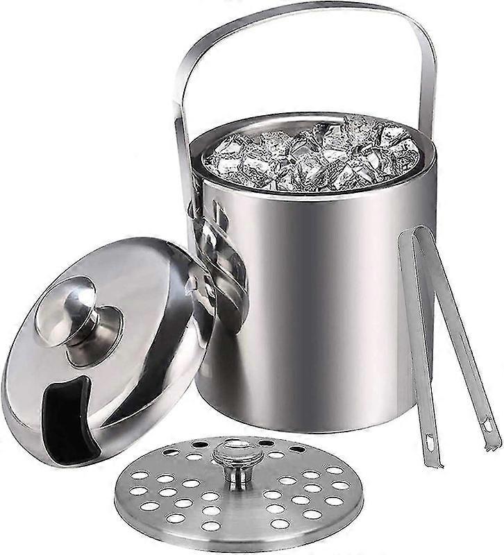 Insulated Ice Bucket with Clip Handle Lid 1.3L Double Walled Stainless Steel Ice Bucket Champagne Cooler--