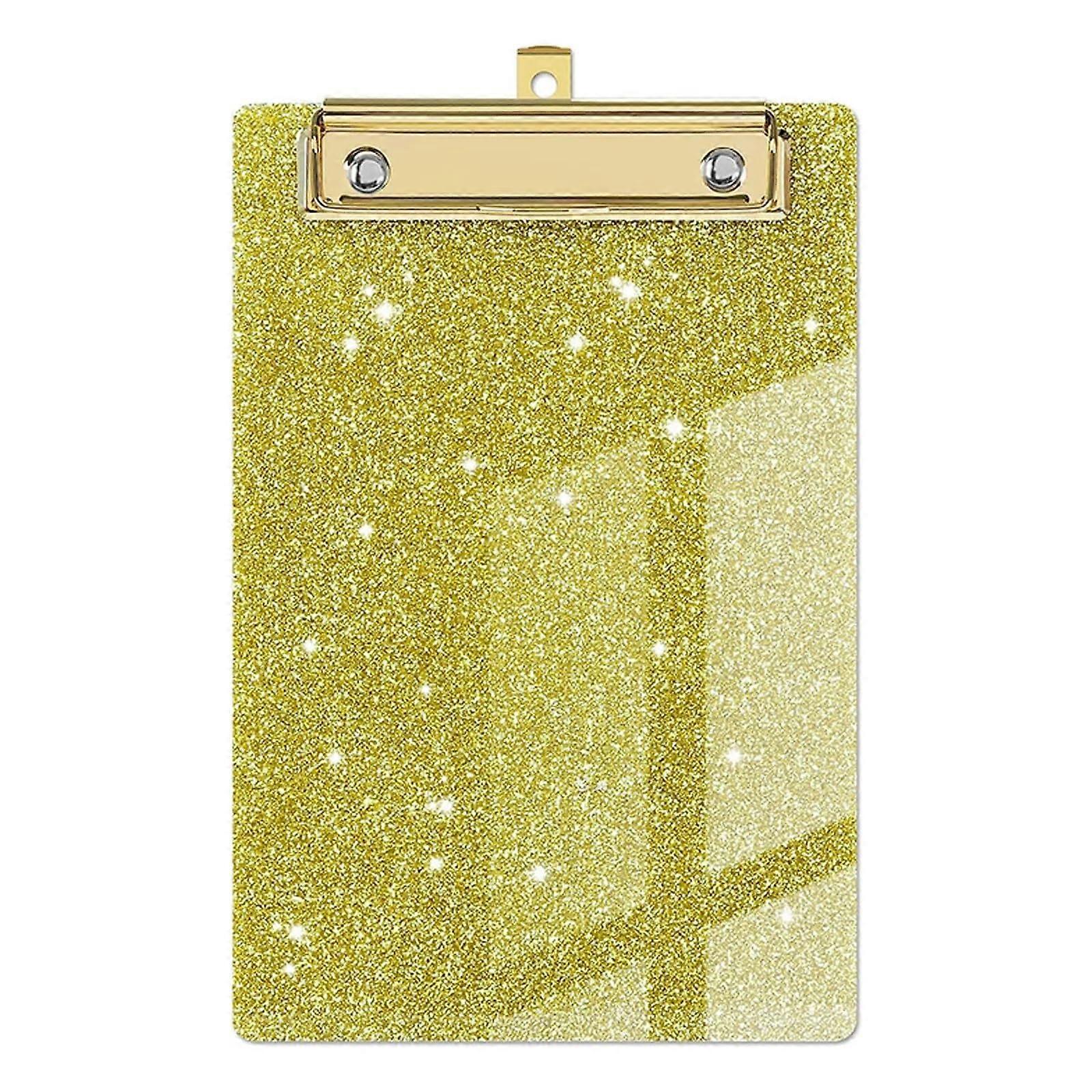 Clipboard Holder Paper Organizer, glittery writing clipboard with flat gold clip (Color: Yellow)