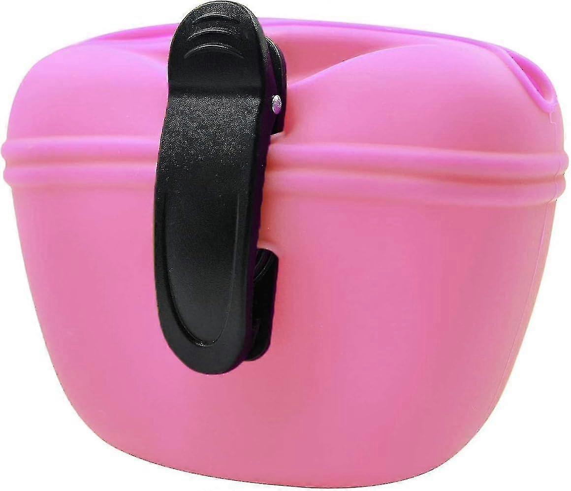 Silicone Dog Treat Bag With Clip - Portable Dog Food Container For Training - Magnetic Closure - Pink