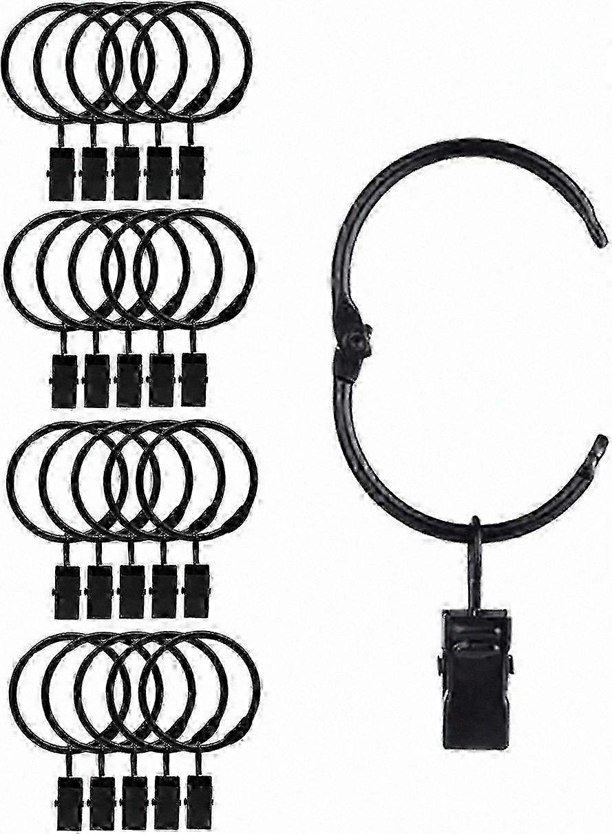 Black Metal Curtain Rings with Clips, 38mm Inner Diameter, Set of 20 for Multiple Curtain Styles