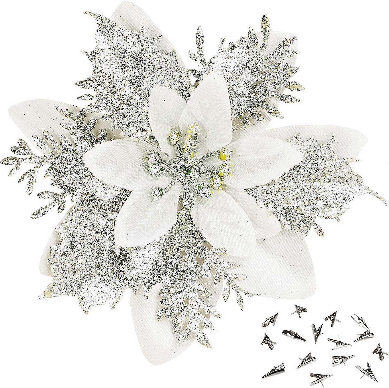 15pcs Silver Poinsettia Artificial Flowers With Clips