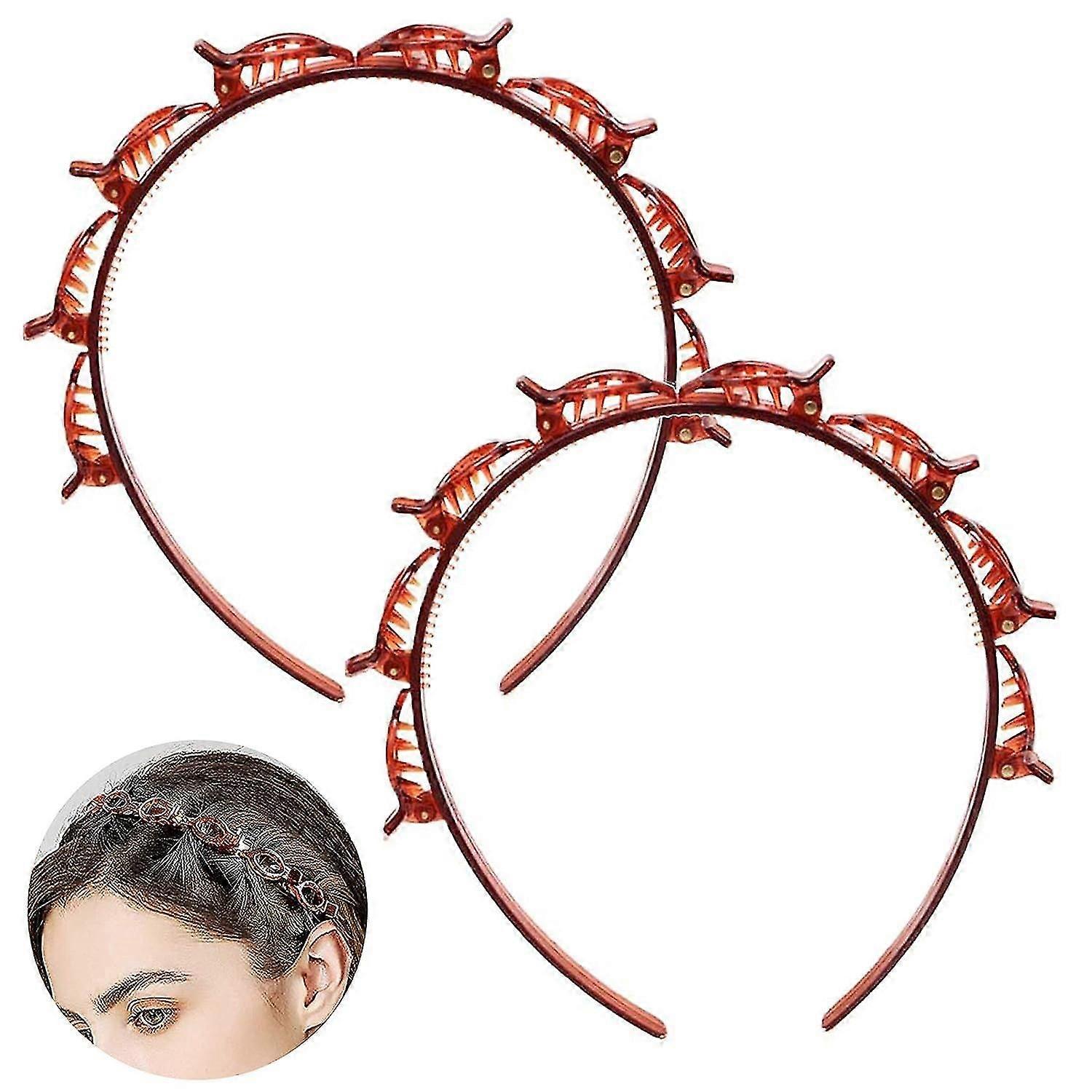 2pcs s With Clips Hairband With Clips On Top Braided Double Bangs