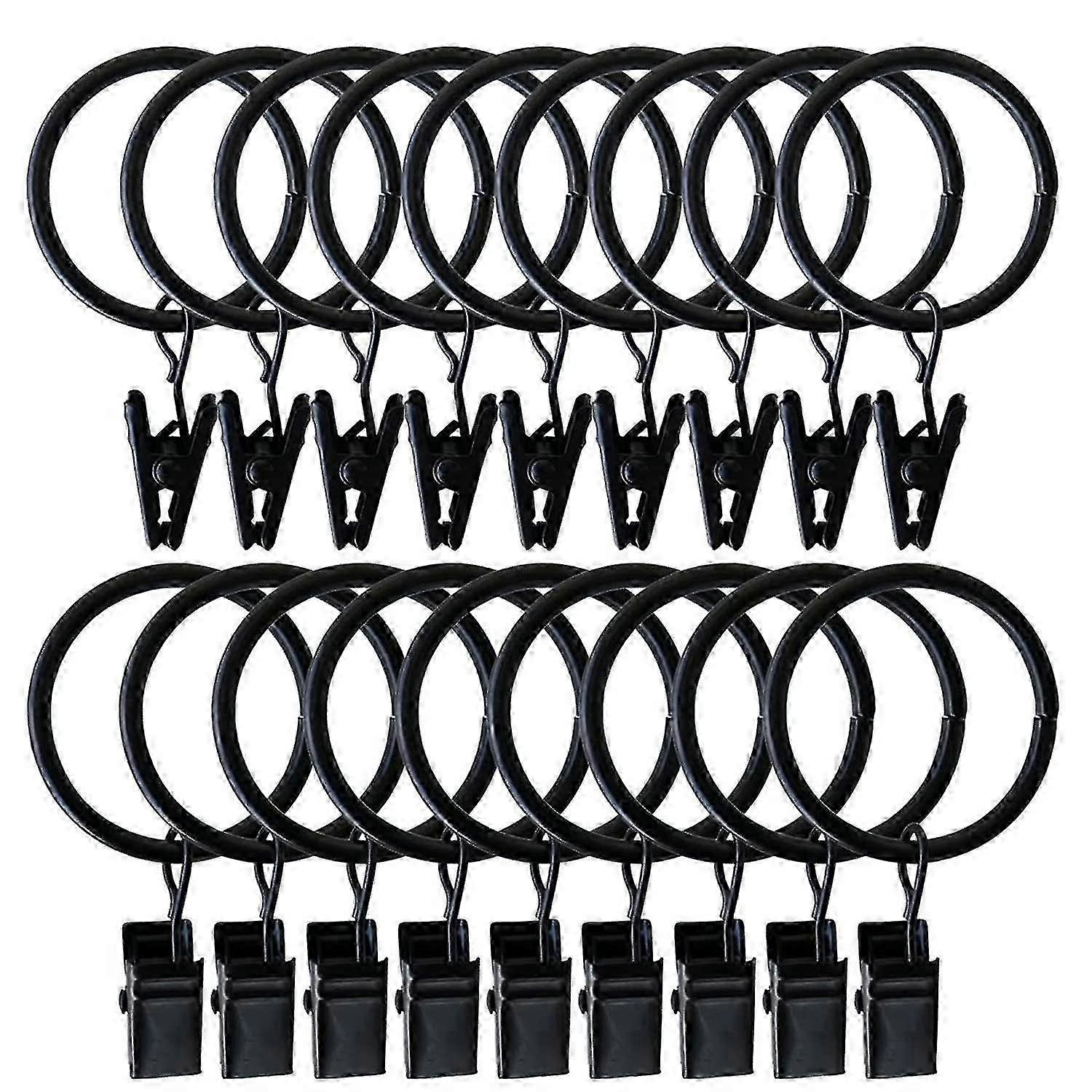 20pcs Black Curtain Rings with Clips - Hanging Hooks for Window, Parlor, Balcony, Drapes, Rods