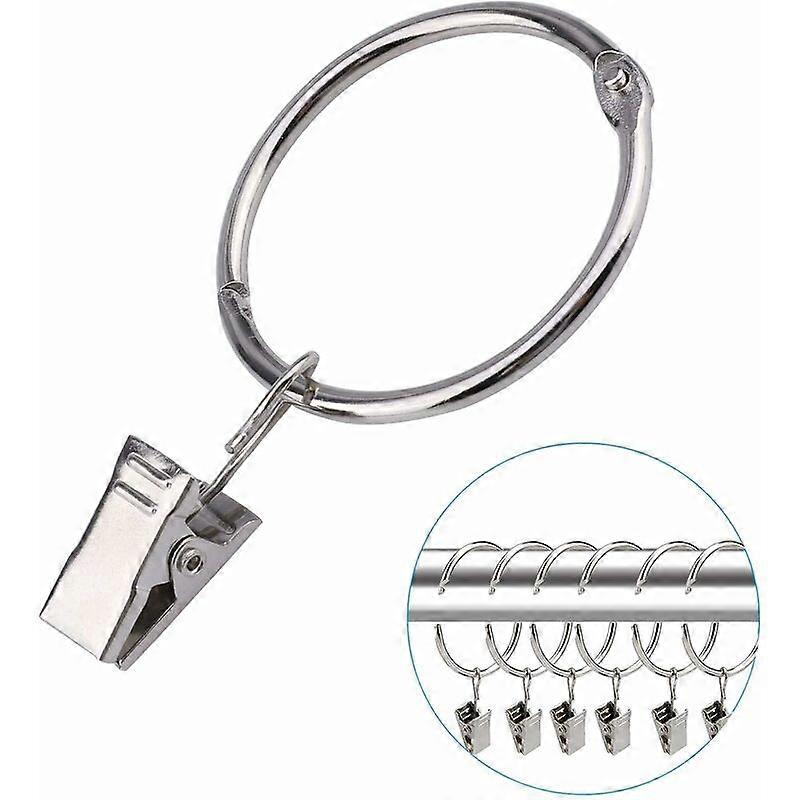 30 Pieces Curtain Ring with Clips, Metal Curtain Rings Hanging Rings with Clips for Curtains and Rods, Easy Open and Close, 38mm Inner Diameter (Silve