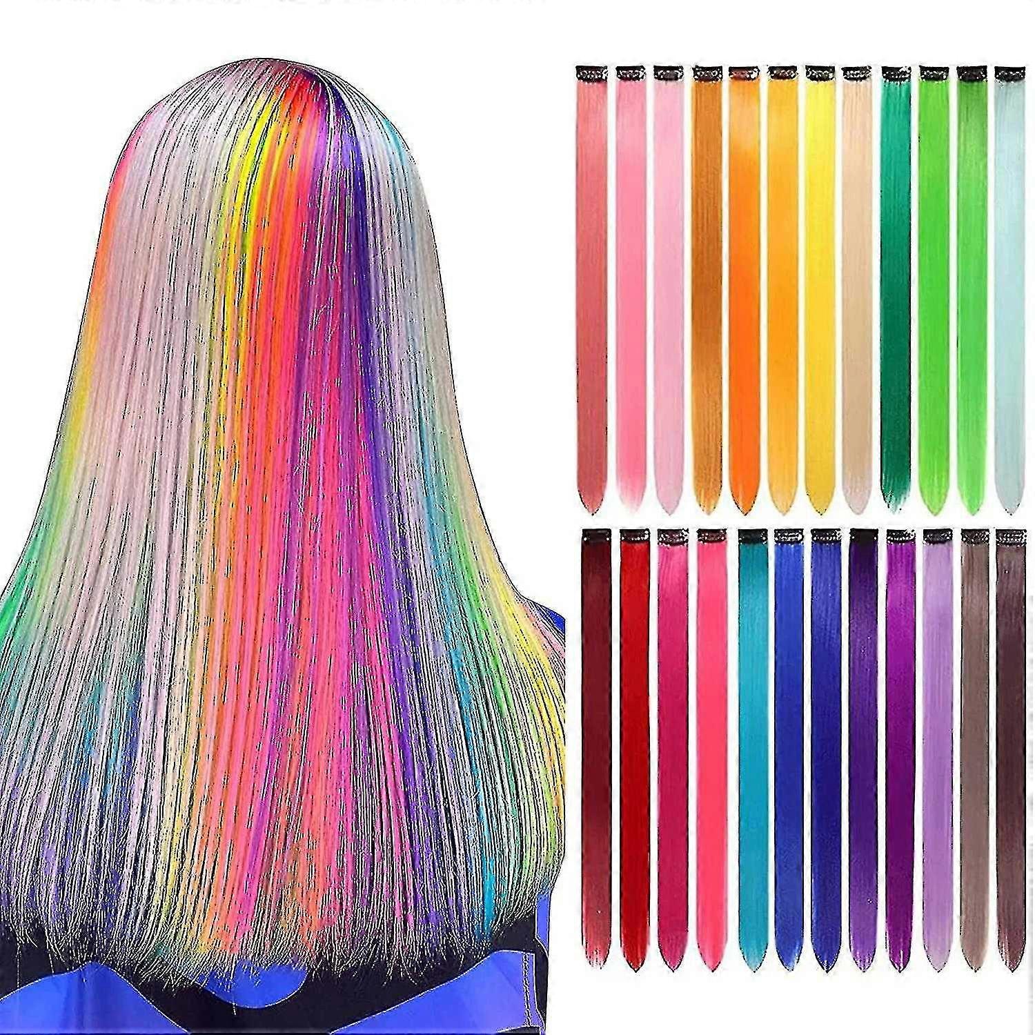 Rainbow Hair Extensions In Clip 24 Pcs/pack 24 Colors 22 Inch Synthetic Straight Long Hair Rainbow S