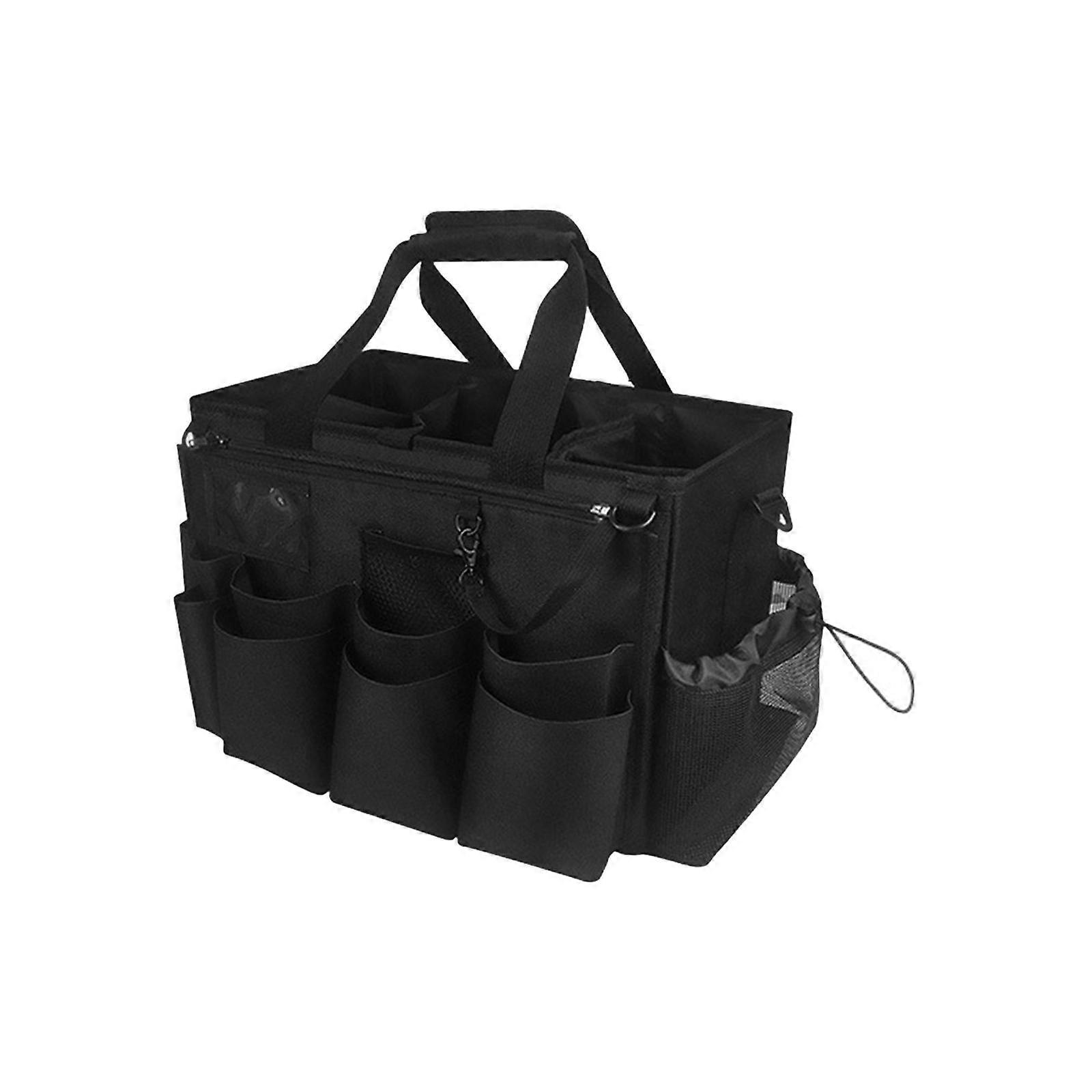 Description: 【Size】Cleaning storage bags is 17.72'' in length,9.84'' in width, 10.63'' in height size 【Multi pockets】Cleaning Supplies Organizer with Handle has 12 exterior pockets for all your cleaning supplies like detergent, bottles, sprays, rags, cloths, gloves. The front pouch holds keys or brushes, while clear slot inserts your business cards. Zippered pocket on the back for your wallet, cell phone, credit cards. 2 removable internal dividers provide 5 compartments, keeping different tools upright. 【Removable Padded Cushion】:This cleaning tool organizer has a detachable apron. When you clean the room, you don't need to carry a large tool bag that you don't need, you only need to work with an apron with some suitable tools, which greatly reduces the pressure of carrying. 【Wide application】:The cleaning supply bag is not only suitable for housekeepers, cleaning workers, but also can be used as storage for car washing, gardening tools, painting tools, and items under the sink. 【Material】The cleaning supplies organizer is made of high quality polyester materials with thicker lining, which is durable, wearable and sturdy. Size Chart: 45cmx25cmx27cm/17.72inchx9.84inchx10.63inch Package Includes: 1 Cleaning storage bags Note: Please allow slightly errors due to manual measurement and different monitors.
