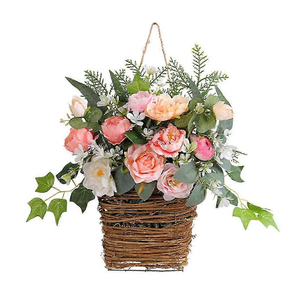 Cream Hydrangea Door Hanger Basket Wreath,Pink Berry Wildflower Door Hanger Basket Wreath Wildflower