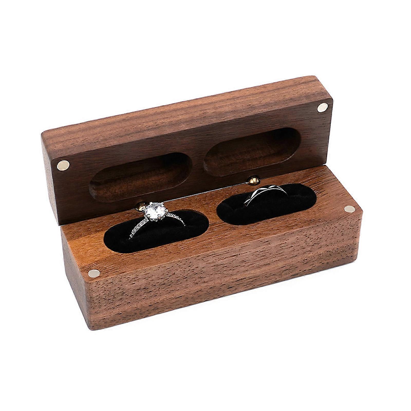 Walnut Wood Ring Organizer Jewelry Wooden Box Case for Proposal Engagement