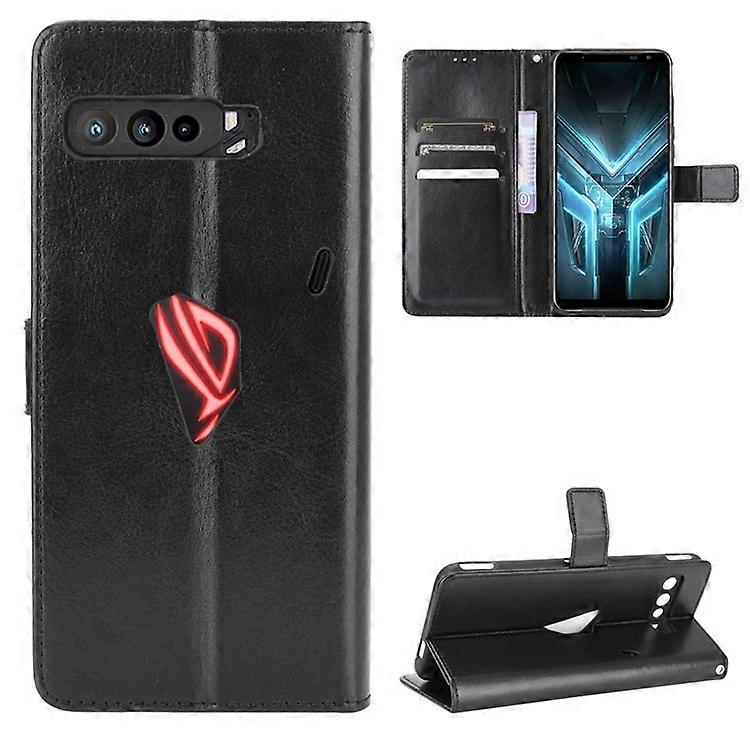Crazy Horse Texture Wallet Stand Leather Phone Case with Logo Hole Compatible For Asus ROG Phone 3/ZS661KS/ROG Phone 3 Strix