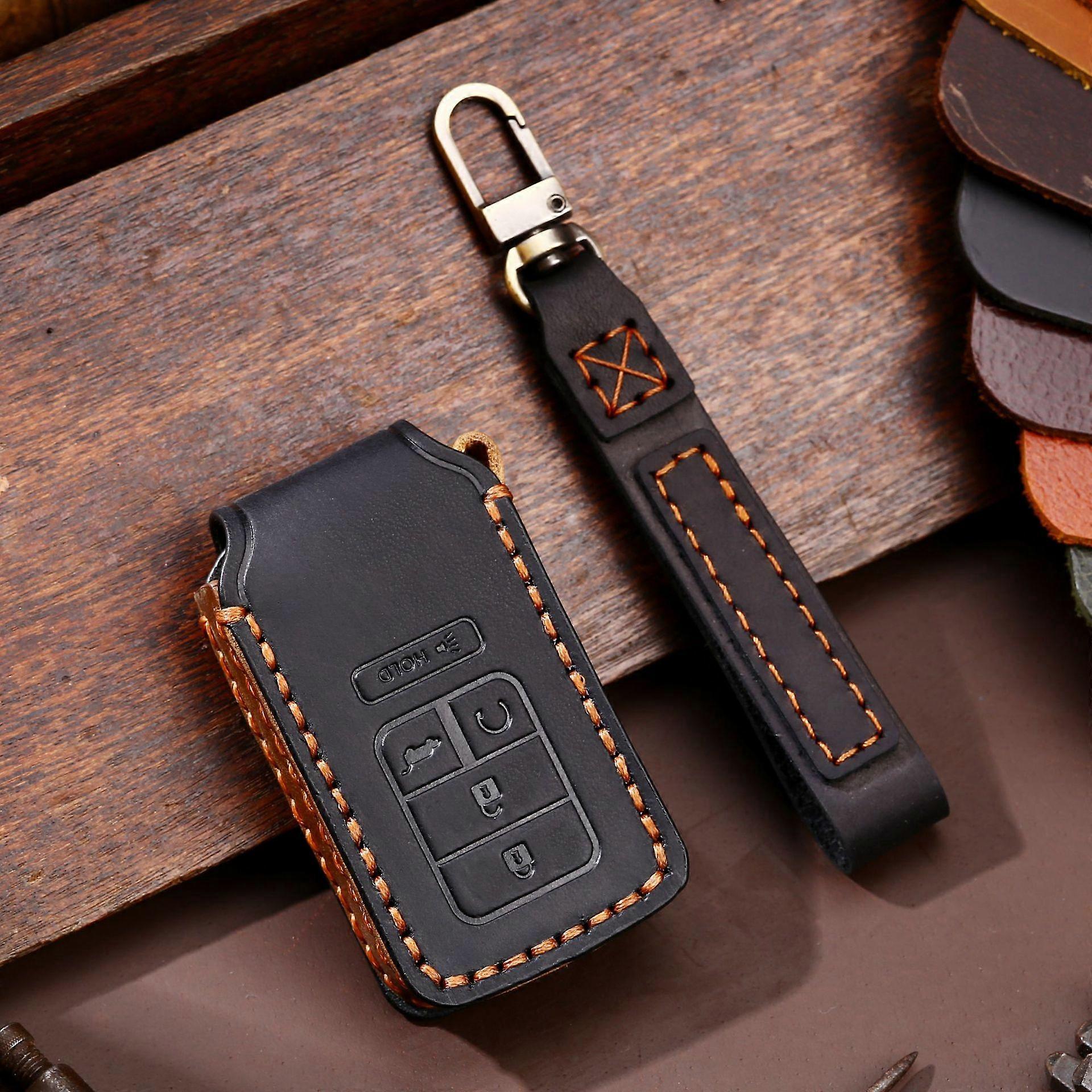 Crazy Horse Leather 5 Button 7 Button Car Remote Key Fob Case Cover for Honda Odyssey Civic Accord CR-V Pilot~09087