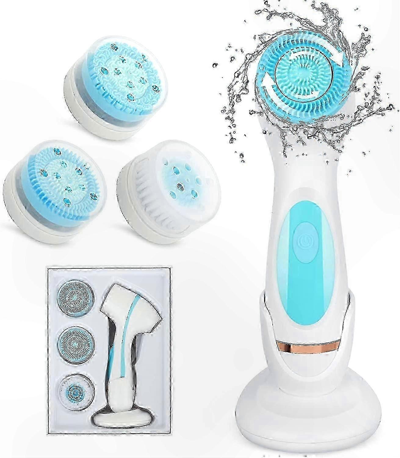 Dual Rotation Facial Brush with 3 Interchangeable Heads for Cleansing and Exfoliation, Rechargeable Design