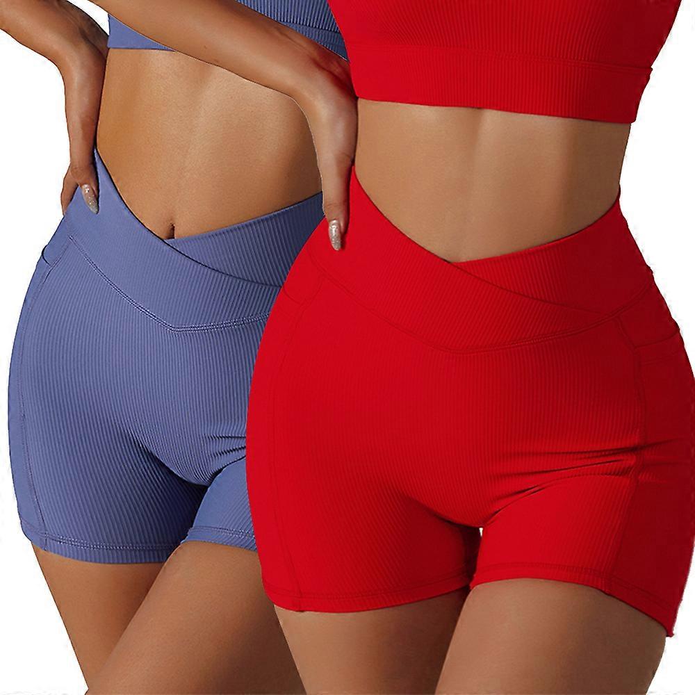 2 pieces of cross waist head lifting hip yoga shorts pocket cycling running fitness pants women's high waist tight running shorts