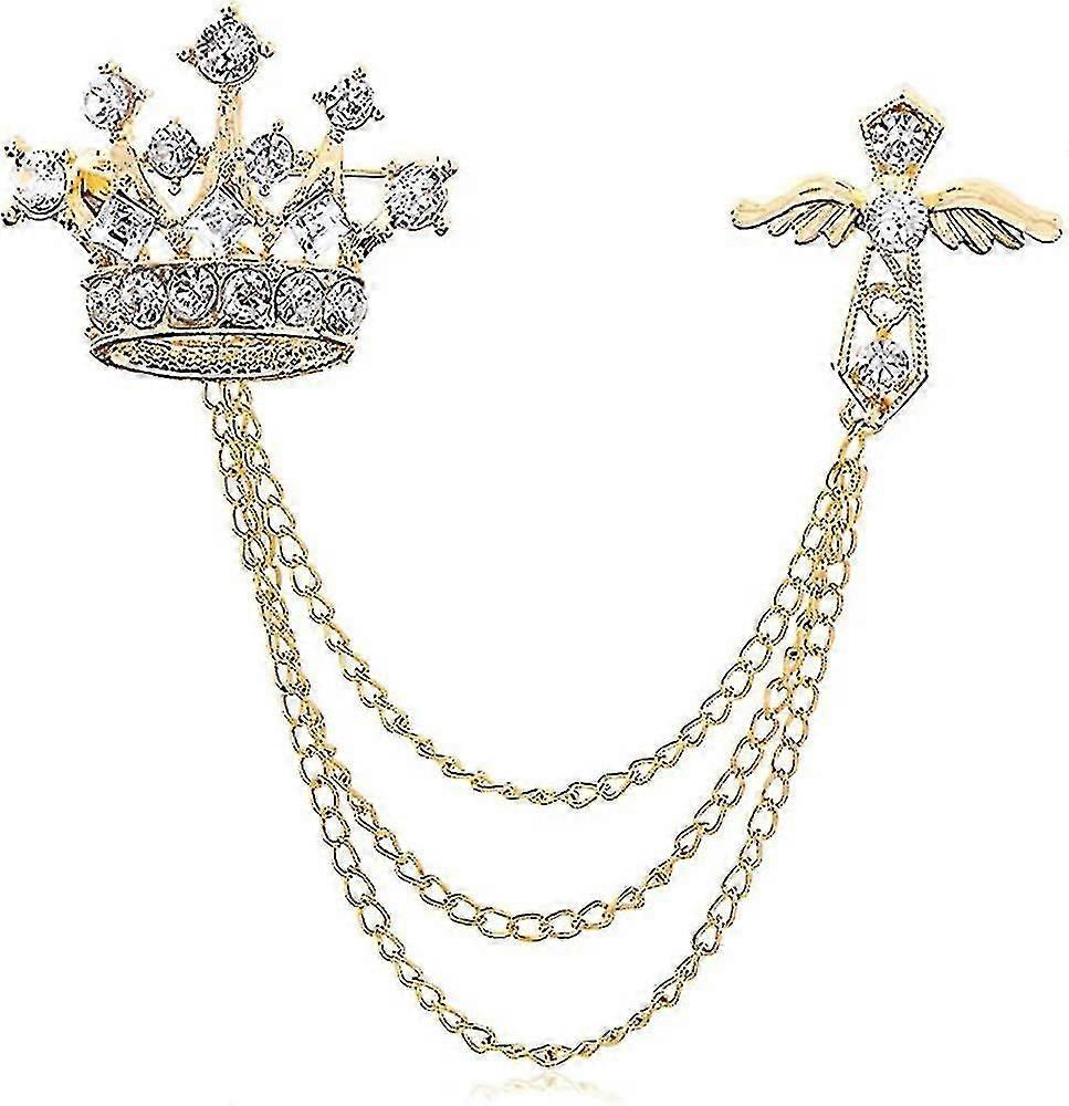 Cross Crown Long Chain Brooch, Rhinestone Tassel Brooch Pin,retro Crystal Suit Pins Collar Pin,coat Tassel Chain Lapel Pins For Men's Suit Accessories