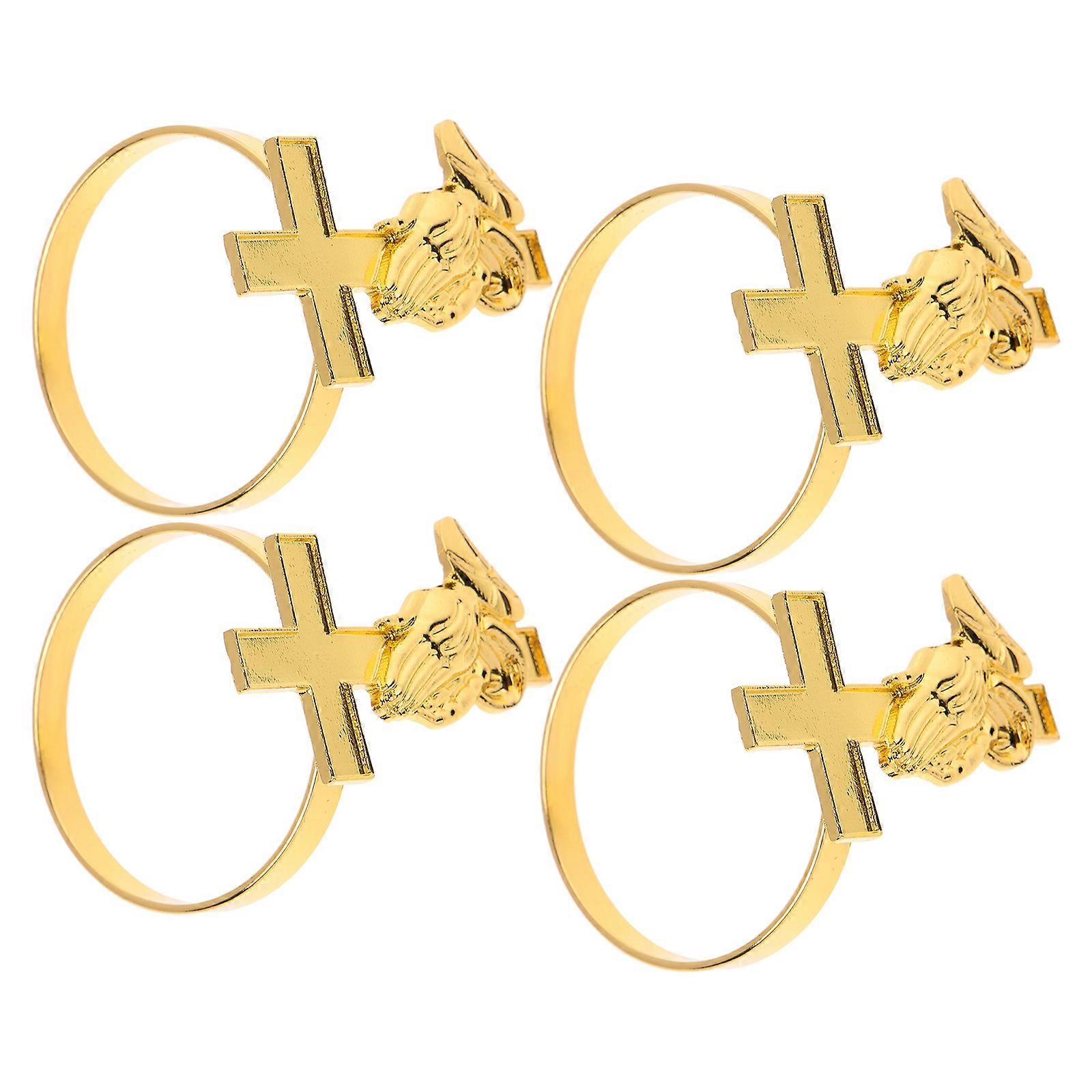 4pcs Metal Napkin Rings with Cross Design, Elegant Serviette Holders for Cloth Napkins, Table Decoration for Wedding, Christmas, Thanksgiving, and