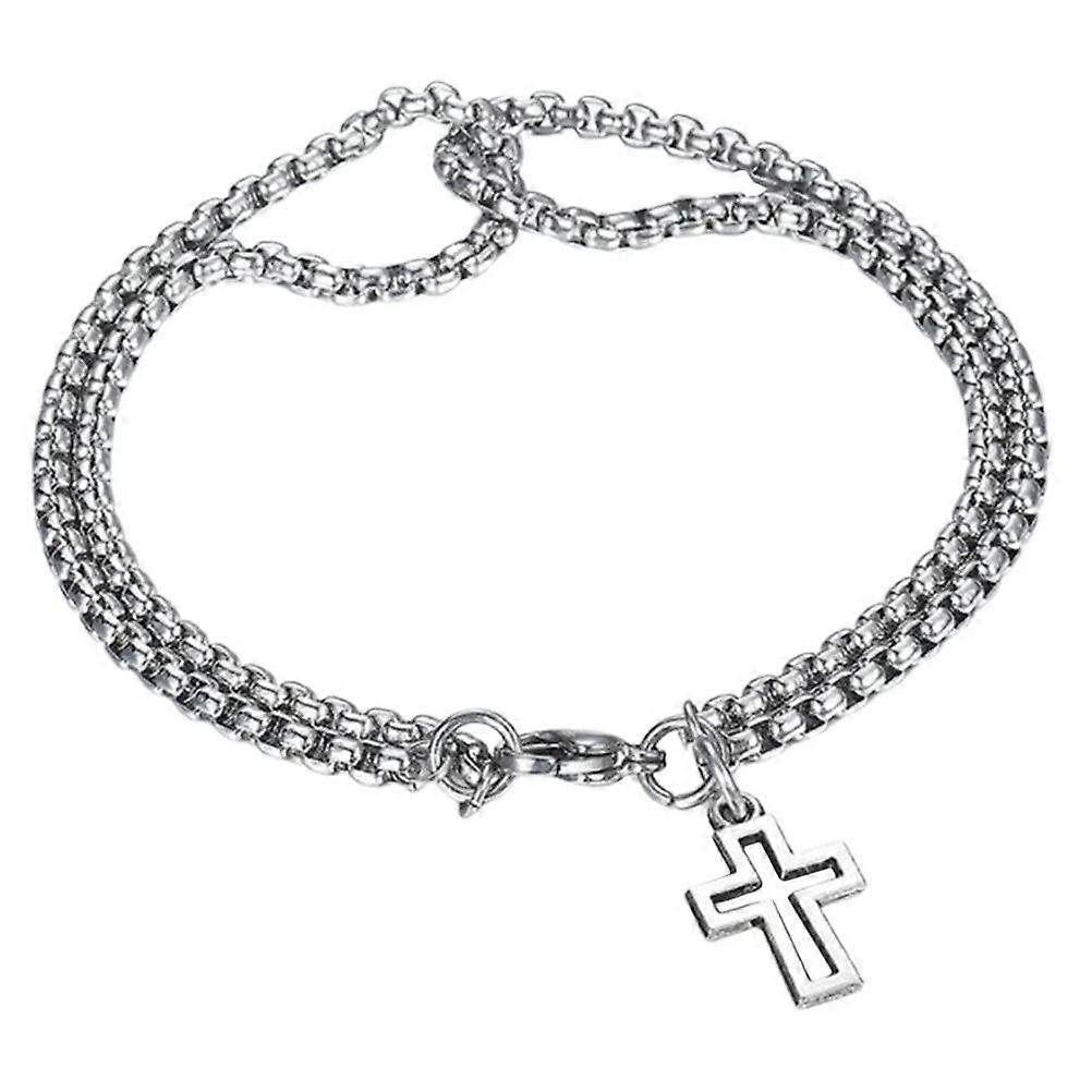 Cross Bracelet Men Stainless Steel Bracelet Rope Chain Double Layer Bracelet Decor
