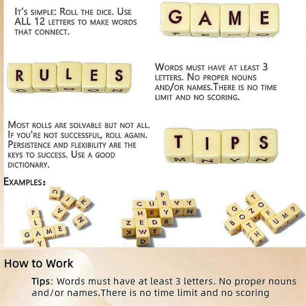[Multifunctional educational dice for language skills] Use our multifunctional educational dice to enhance children's spelling, word recognition and language skills. Perfect for making learning interesting and interactive, this game turns language practice into fascinating activities. [Quality and technology] Our dice are made of , high-quality materials and carefully hand-polished, with smooth edges to prevent chipping and splitting. Laser engraving patterns accuracy and uniqueness, making each dice unique. [Promote cognitive development] Encourage players to think critically and solve problems when making strategies and decisions during . This game is not only entertaining, but also enhances cognitive development and helps children to analyze and think creatively. [Child design] is designed with in mind. Our letter building blocks exceed the danger size standard, with smooth edges and no burrs. Safe for preschool children, this game allows children to play without security concerns. [Suitable for all ages] Suitable for children aged 3 and above, this game can improve memory, strategic thinking ability and vocabulary skills. It is very suitable for family interaction and promotes parent-child communication and healthy competition. Whether , in the classroom, outdoors or outdoors, this game can provide a useful and interesting learning experience. Colour:As Shown Material:Acrylic Package Contents: 1 * crossword puzzle kit Only the above package content, other products are not included. Note: Light reflection and different displays may cause the color of the item in the picture a little different from the real thing. The measurement allowed error is +/- 1-3cm.